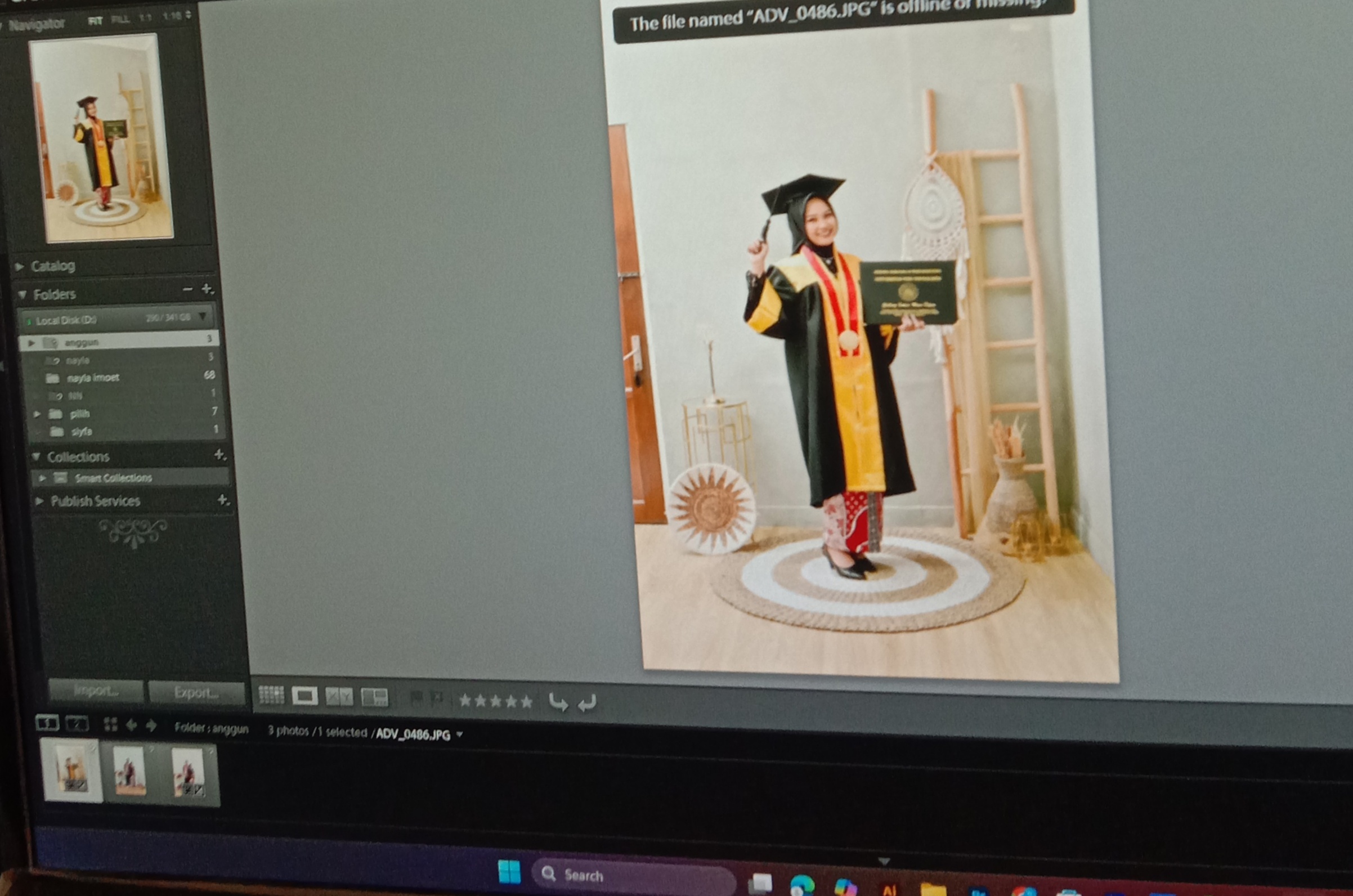 Rabu 10 Desember 2025 Hari ke8 PKL di Adam Valian Photography Kegiatan: Melanjutkan editing foto studio wisuda melakukan perbaikan detail pada foto, seperti; menghilangkan noda