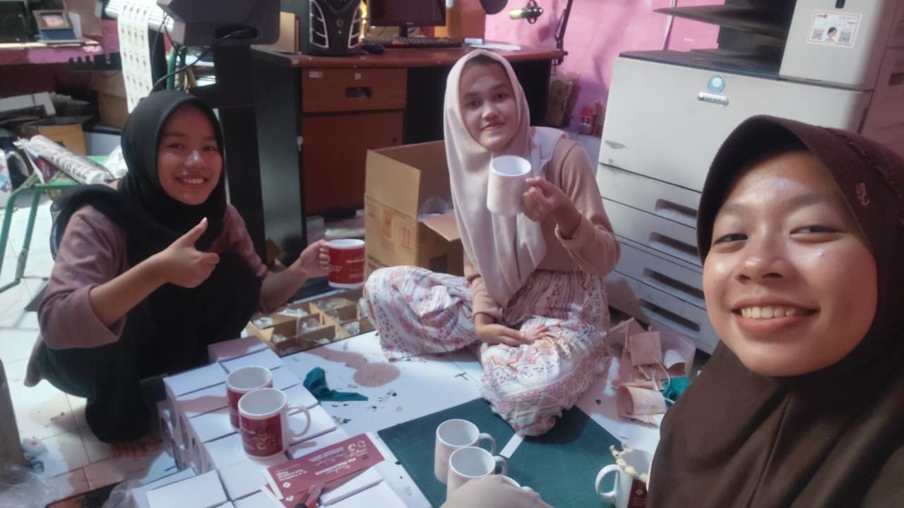 - Titis Larasati: Desain Banner, Membuat Konten, dan Finishing Mug
