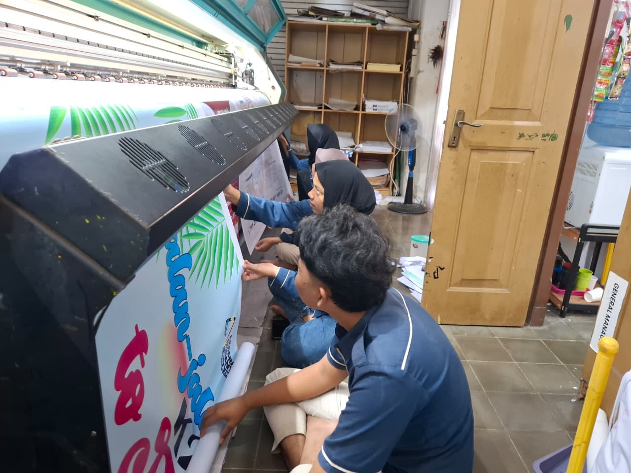 Hari ini kerjanya cukup ringan tapi tetap jalan. Dari pagi lebih banyak bantu di bagian banner karena itu yang paling banyak. Ngebantu gulung banner, rapiin bagian pinggir, sama siapin buat dikirim.