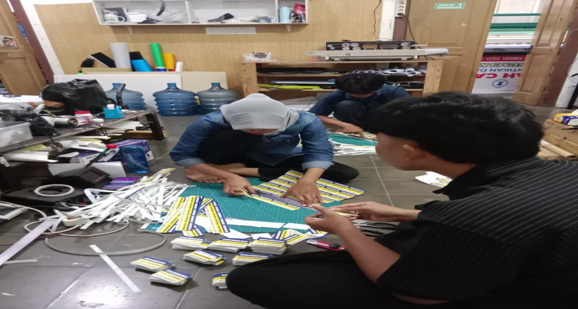 Minggu, 11 Januari 2026. Hari ini di tempat PKL lagi fokus banget ngerjain bagian potong-memotong banner. Sebelum mulai, saya siapin dulu 'senjatanya'—ada penggaris panjang, cutt