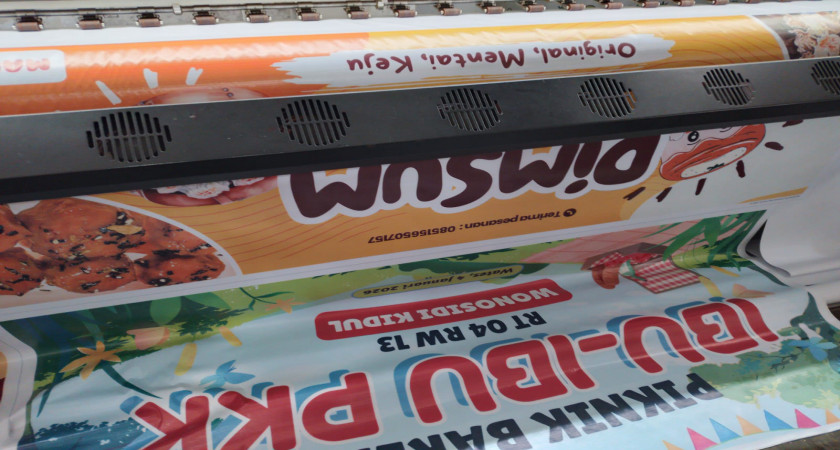 Tadi pagi dimulai dengan motong kertas karton—ngikutin ukuran yang udah ada, pengerjaannya pelan-pelan aja yang penting hasilnya pas dan presisi. Habis itu, saya lanjut bantu-bantu di bagian banner. Kebetulan areanya nggak jauh beda, jadi nggak perlu ribet pindah-pindah tempat.
