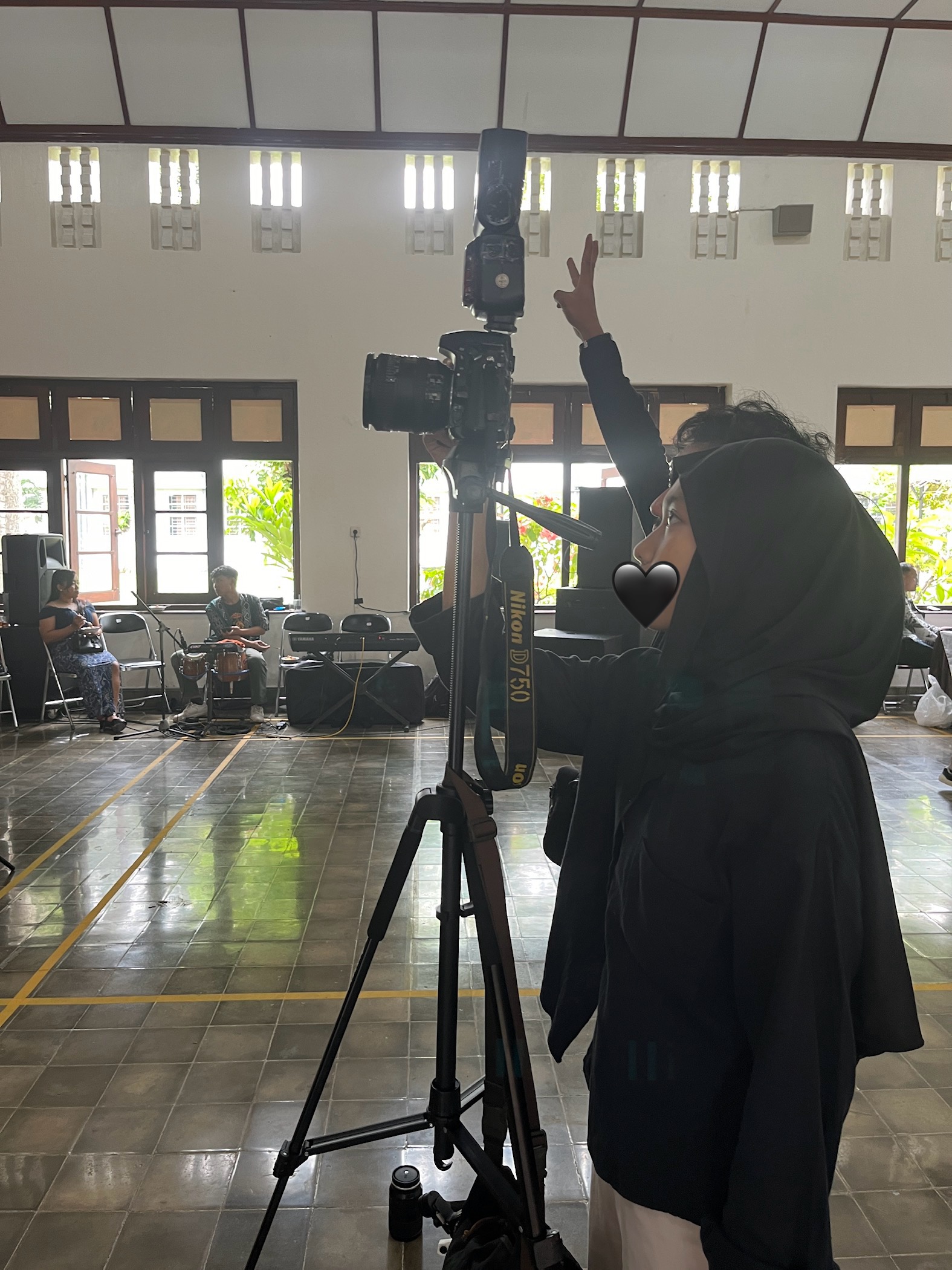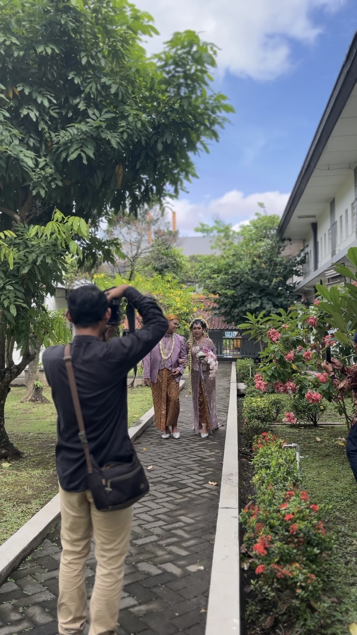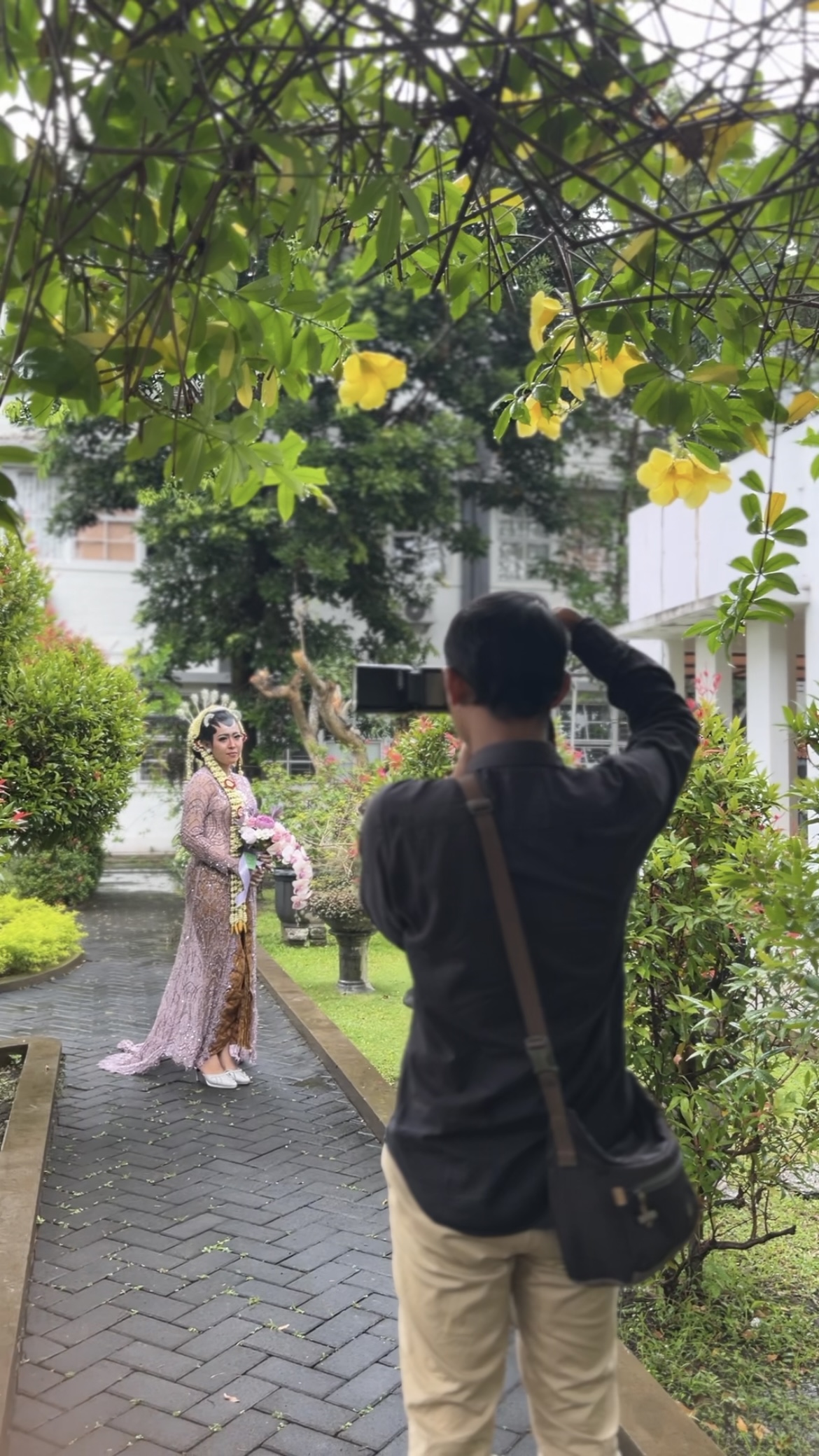 Tugas saya meliputi membantu memotret pengantin dan tamu undangan, mengambil beberapa angle tambahan sebagai second shooter, serta merekam proses pemotretan untuk keperluan BTS. Selain itu, saya juga membantu menyiapkan dan merapikan perlengkapan pemotretan seperti kamera, tripod, dan peralatan pendukung lainnya, baik saat sesi indoor maupun outdoor, agar proses pemotretan berjalan lancar.