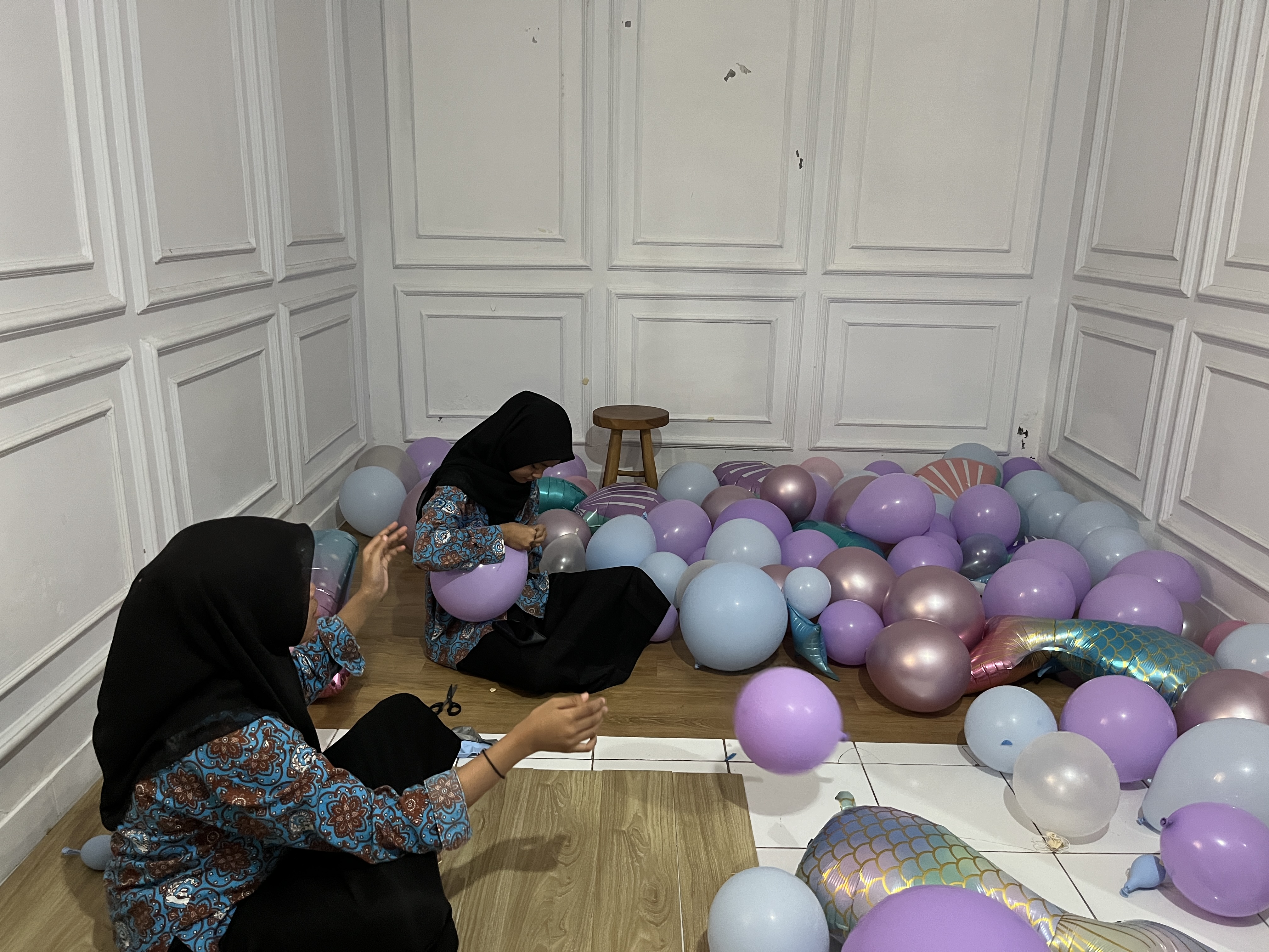 • 29/12/2025 – Saya melaksanakan kegiatan pemotretan dengan merangkai balon sebagai bagian dari dekor, menyiapkan lighting, serta menyiapkan monitor untuk melihat hasil foto secara langsung. Pada siang hari, kami melakukan evaluasi dan review hasil foto di luar studio untuk melihat kekurangan dan perbaikan yang diperlukan.