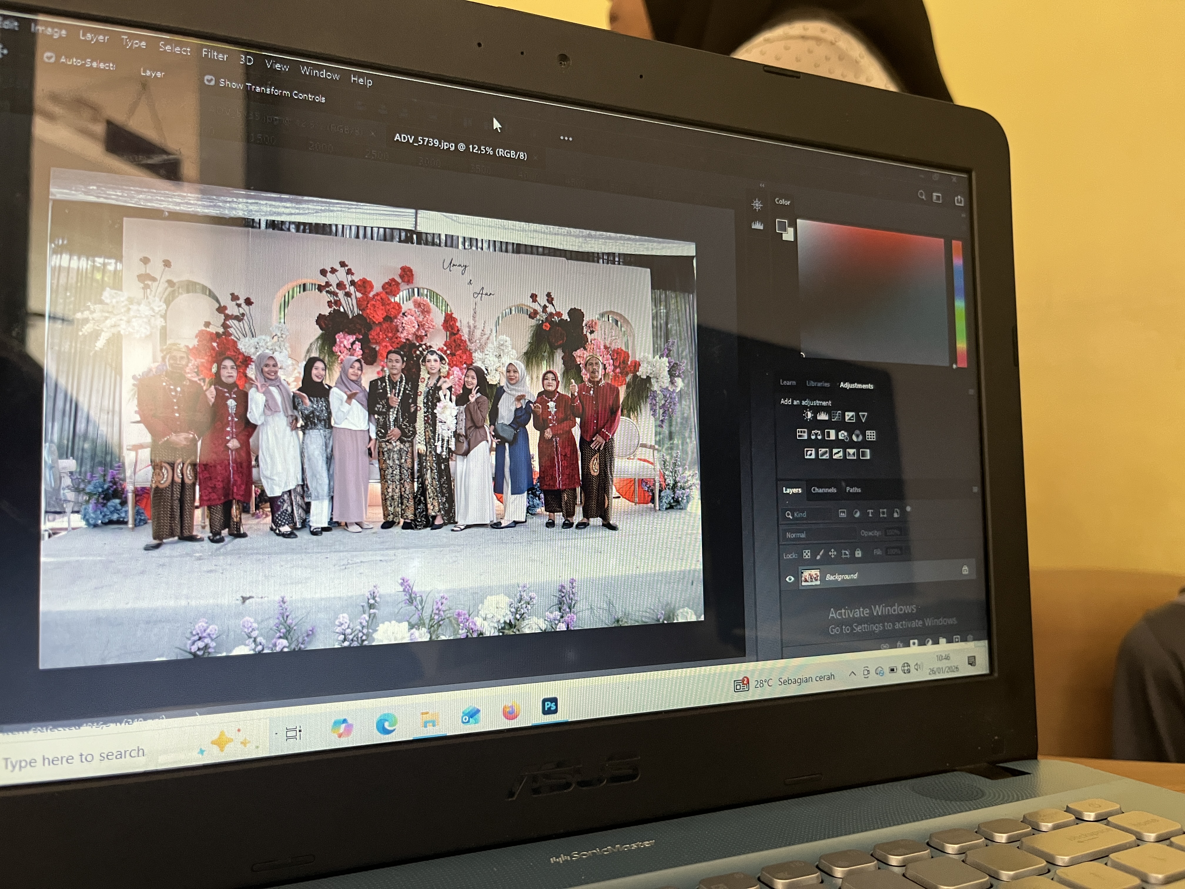 • 26/01/2026 – Saya melakukan proses mengubah dan menyempurnakan ekspresi tamu maupun pengantin di Photoshop, agar terlihat lebih natural dan sesuai dengan momen yang diabadikan.