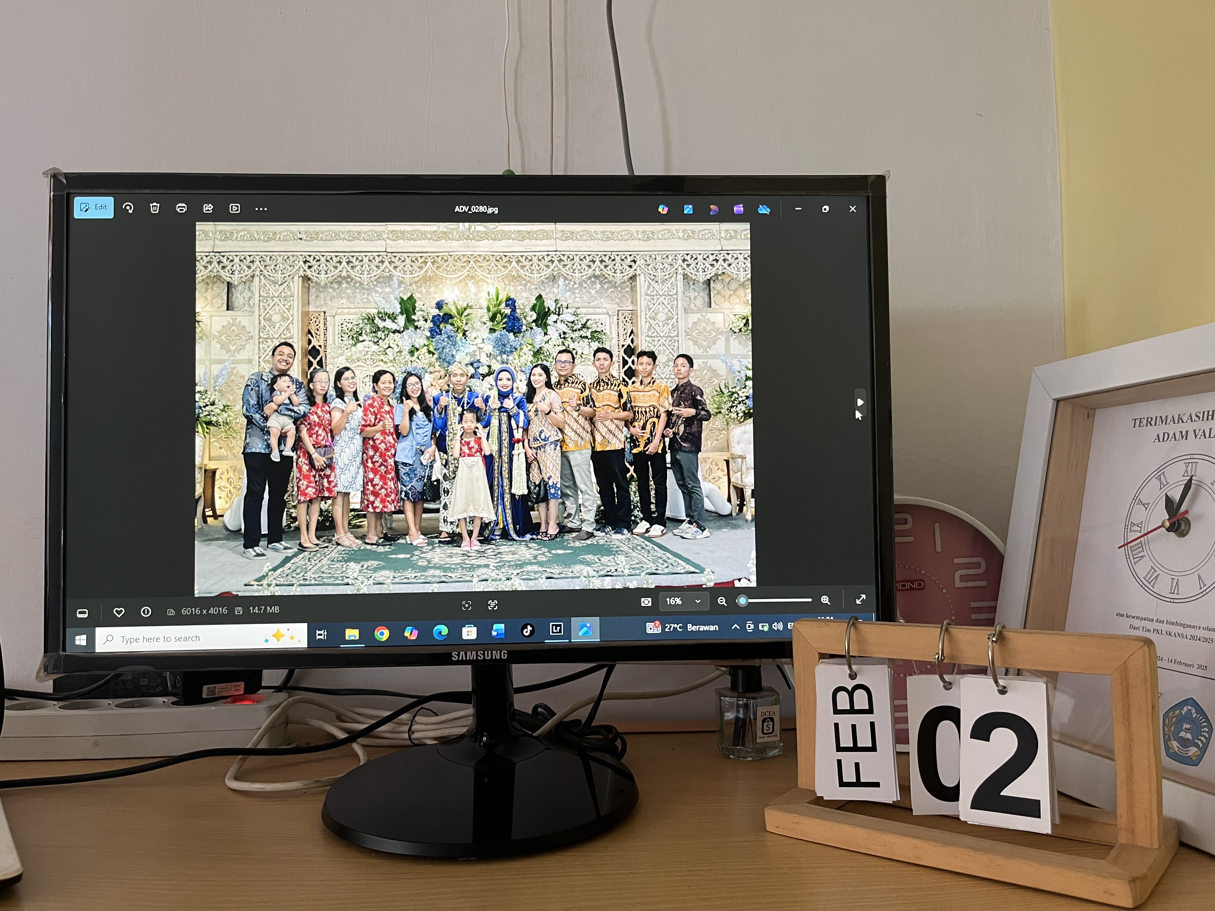 • 03/02/2026 – Saya masih fokus pada penyesuaian warna foto wedding, karena lighting dari dekor acara cukup menyulitkan dan membuat warna kurang konsisten. Saya melakukan beberapa penyesuaian agar tone tetap seimbang dan hasil terlihat natural.