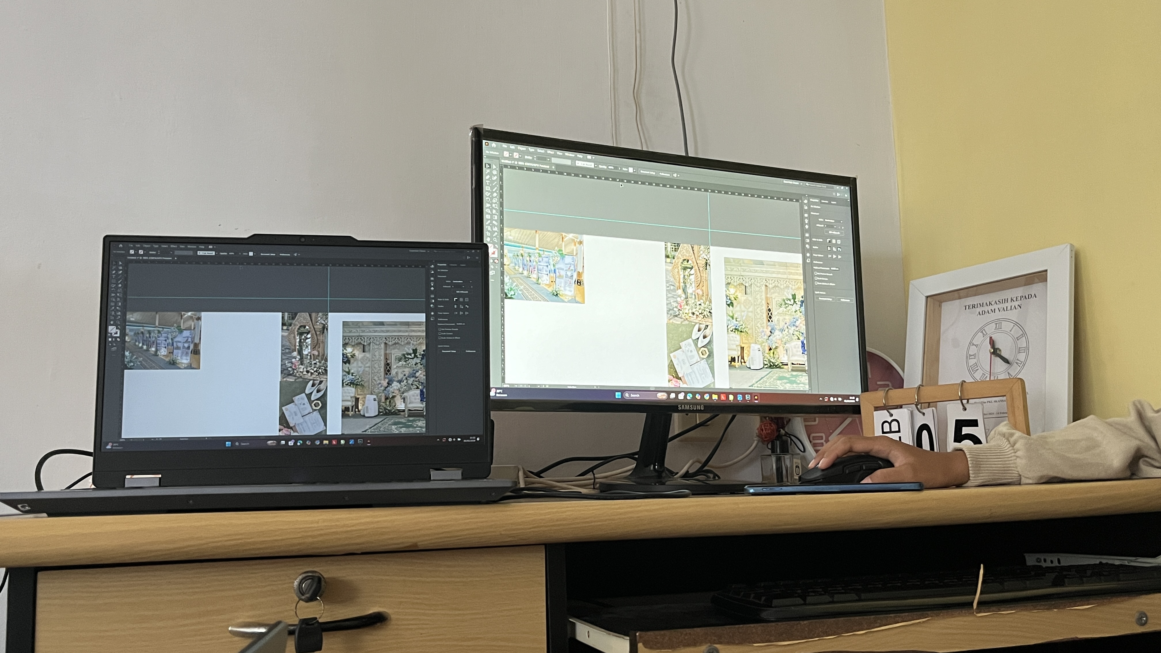 • 05/02/2026 – Saya ditugaskan untuk membuat collage foto yang akan dicetak untuk keperluan album wedding, dengan menyusun beberapa foto agar terlihat rapi, seimbang, dan sesuai konsep desain.