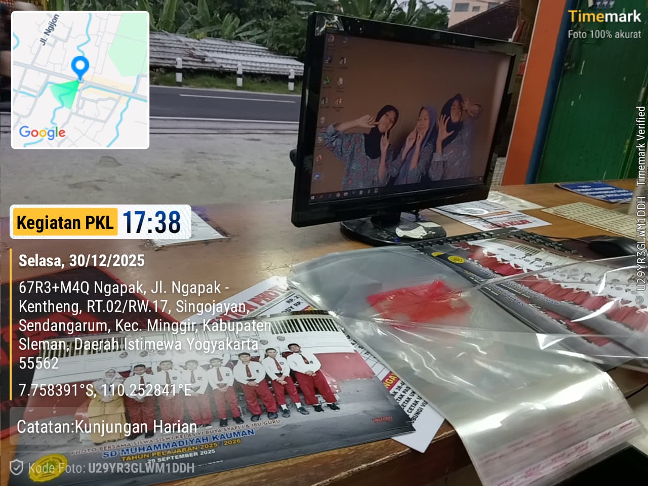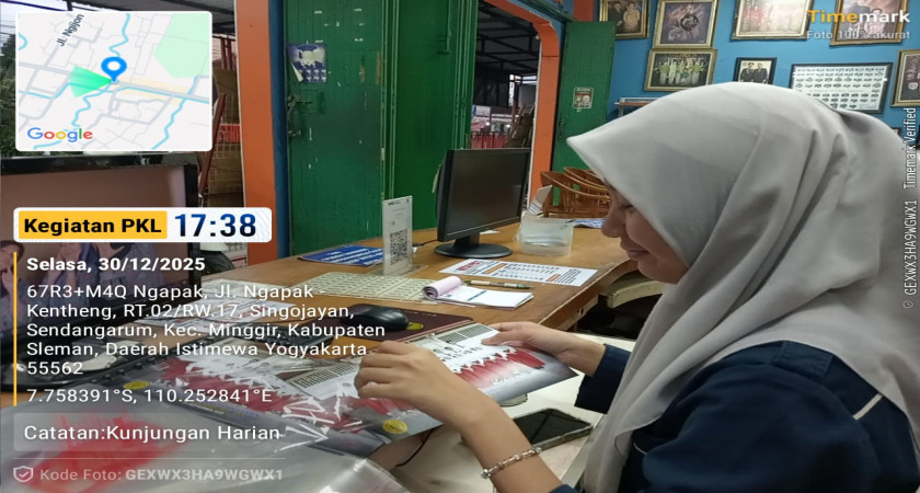 Selasa, 30/12/2025, Hari ini saya berangkat pukul 11.00 (shift siang). Saya berangkat bersama Reva. Kegiatan saya hari ini adalah membantu mengemas hasil cetak jadi foto sekolah bersama dengan Reva dan melayani para customer hingga pukul 20.00.
