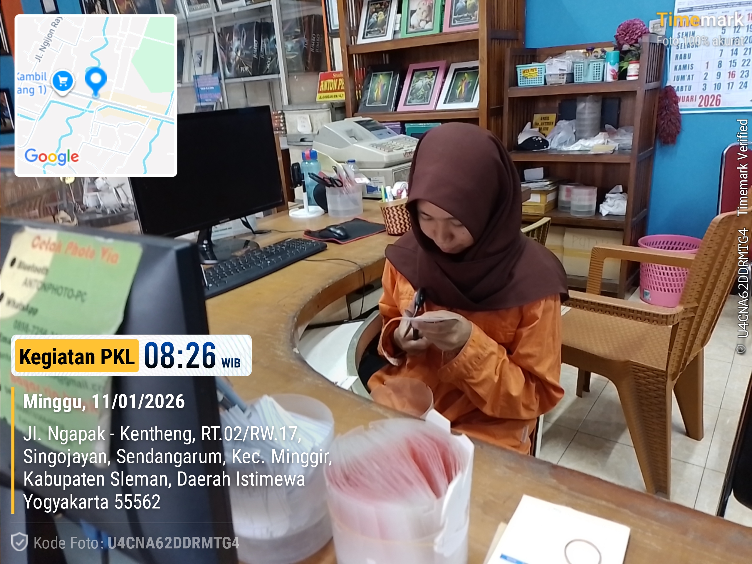 Ahad.18/01/2026 - Saya hari ini mendapatkan shift siang bersama Leni. Kami berangkat dan sesampainya di sana saya segera membantu melayani pelanggan, memfoto pelanggan, memotong d