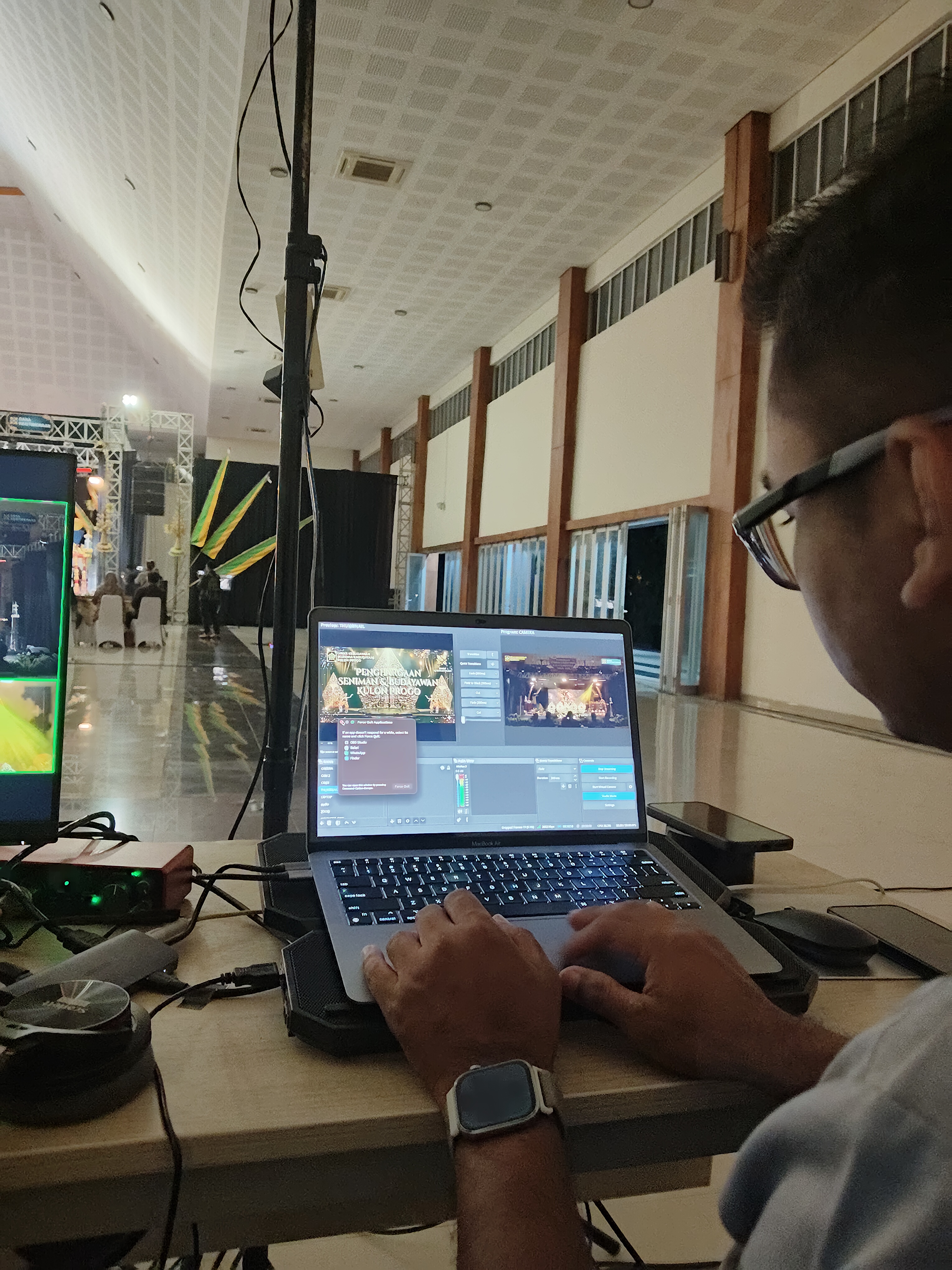 Persiapan live streaming (kamera, kabel, laptop, dan peralatan lainnya) mulai pukul 17.00.