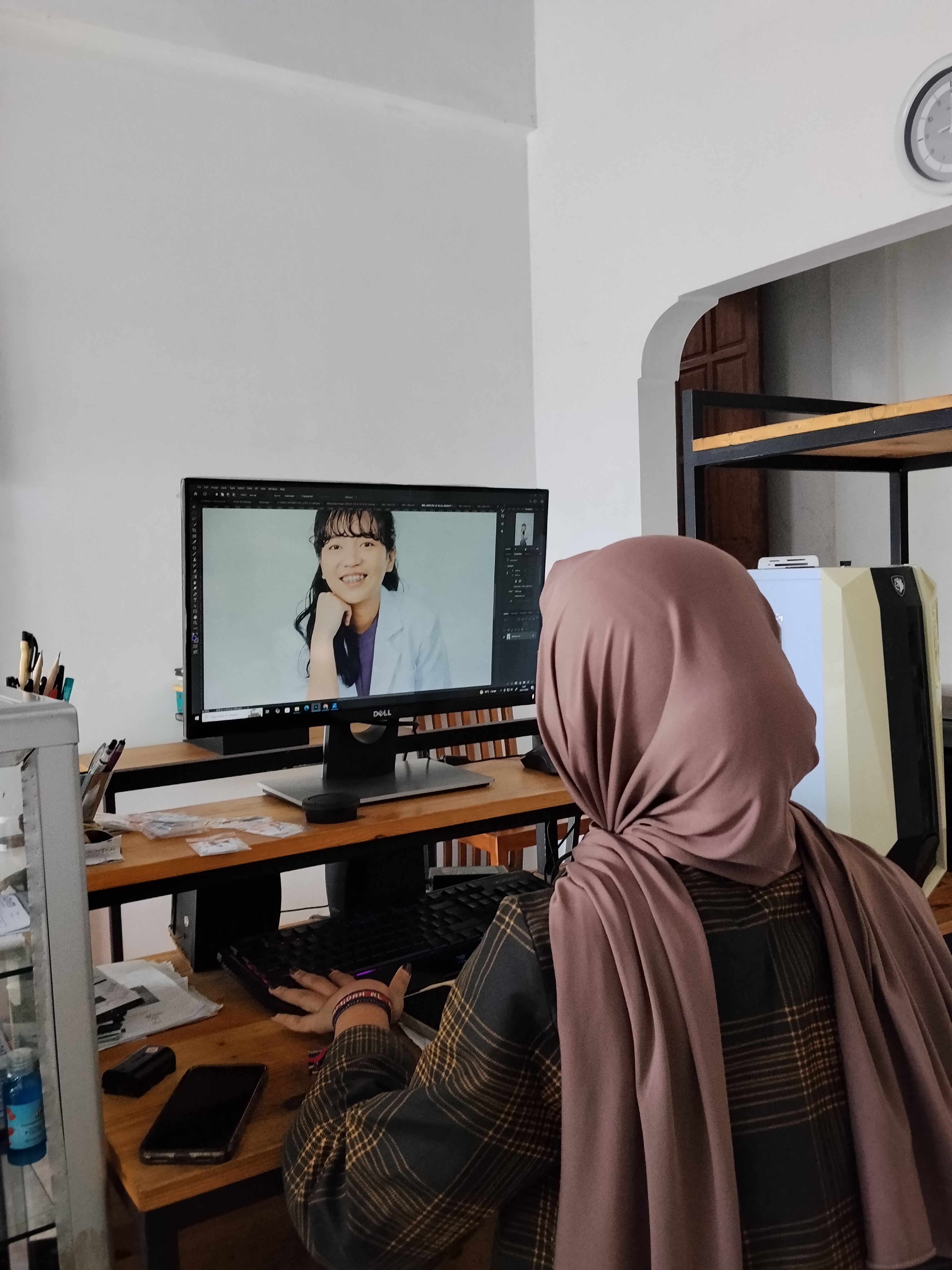 shift pagi spt biasa nyapu menyulaki menyalakan pc mengecek wa dan buku catatan, ternyata semalam ada yg foto, saya cek keperluan mengambil mmc dari kamera kemudian mengedit foto mentah