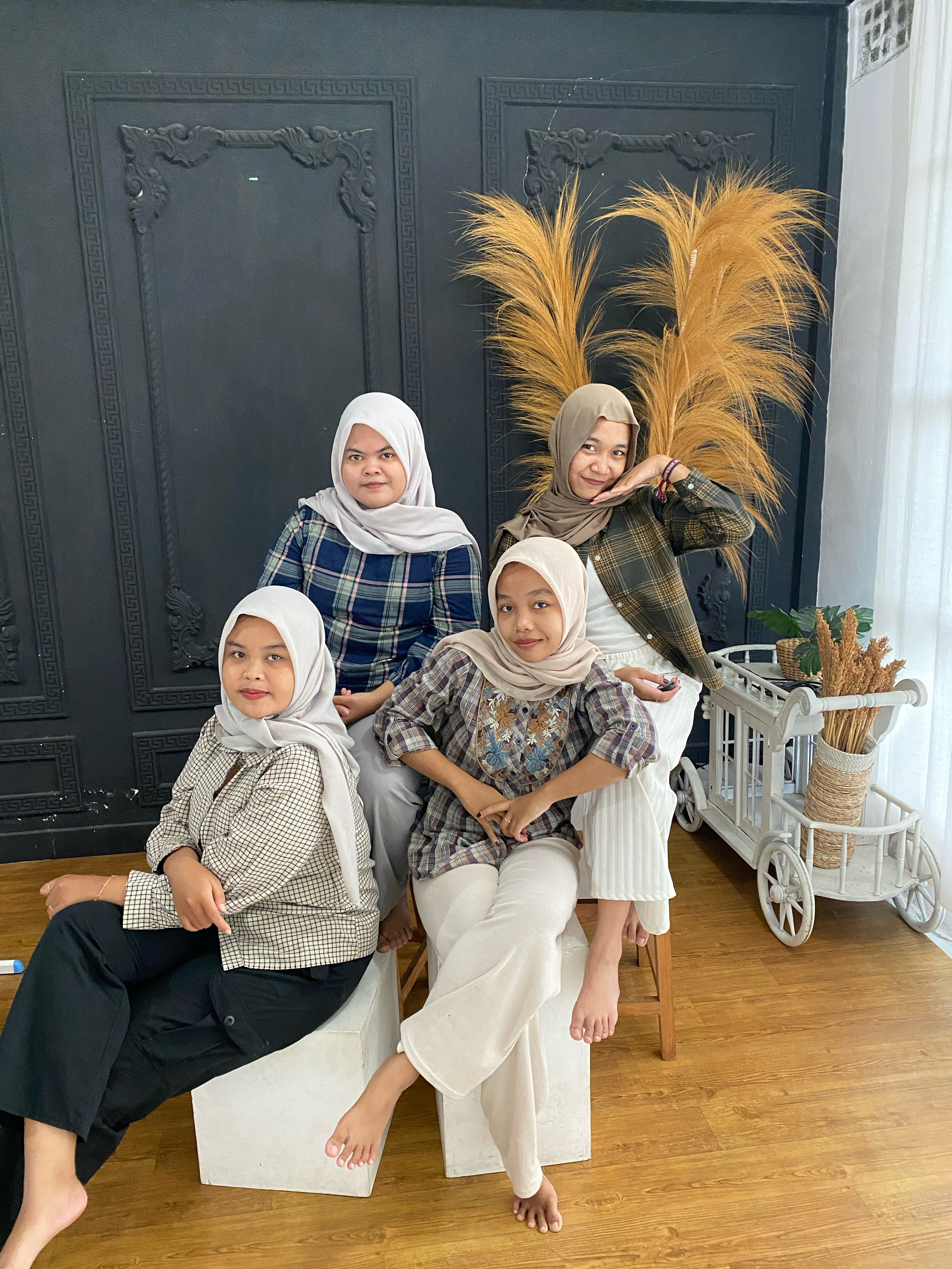 shift pagi, nyapu nyulaki menyalakan pc cek wa isi jurnal nyiapin studio buat foto maternity, bantu mindah kipas dan nyari referensi gaya pose foto, membantu nyiapin properti f