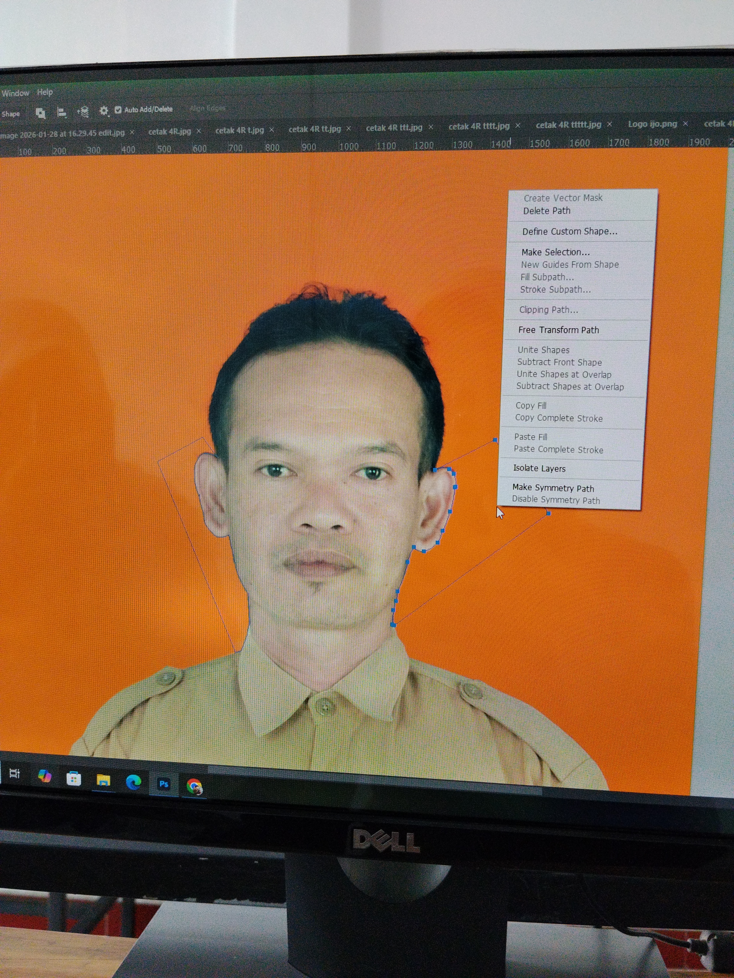 edit pasfoto bg oren (bljr gimana cara remove bg biar rapih pake pen tool, dan menyesuaikan wajah dengan background agar terlihat nyatu contras tidak merah, menyesuaikan warna baju