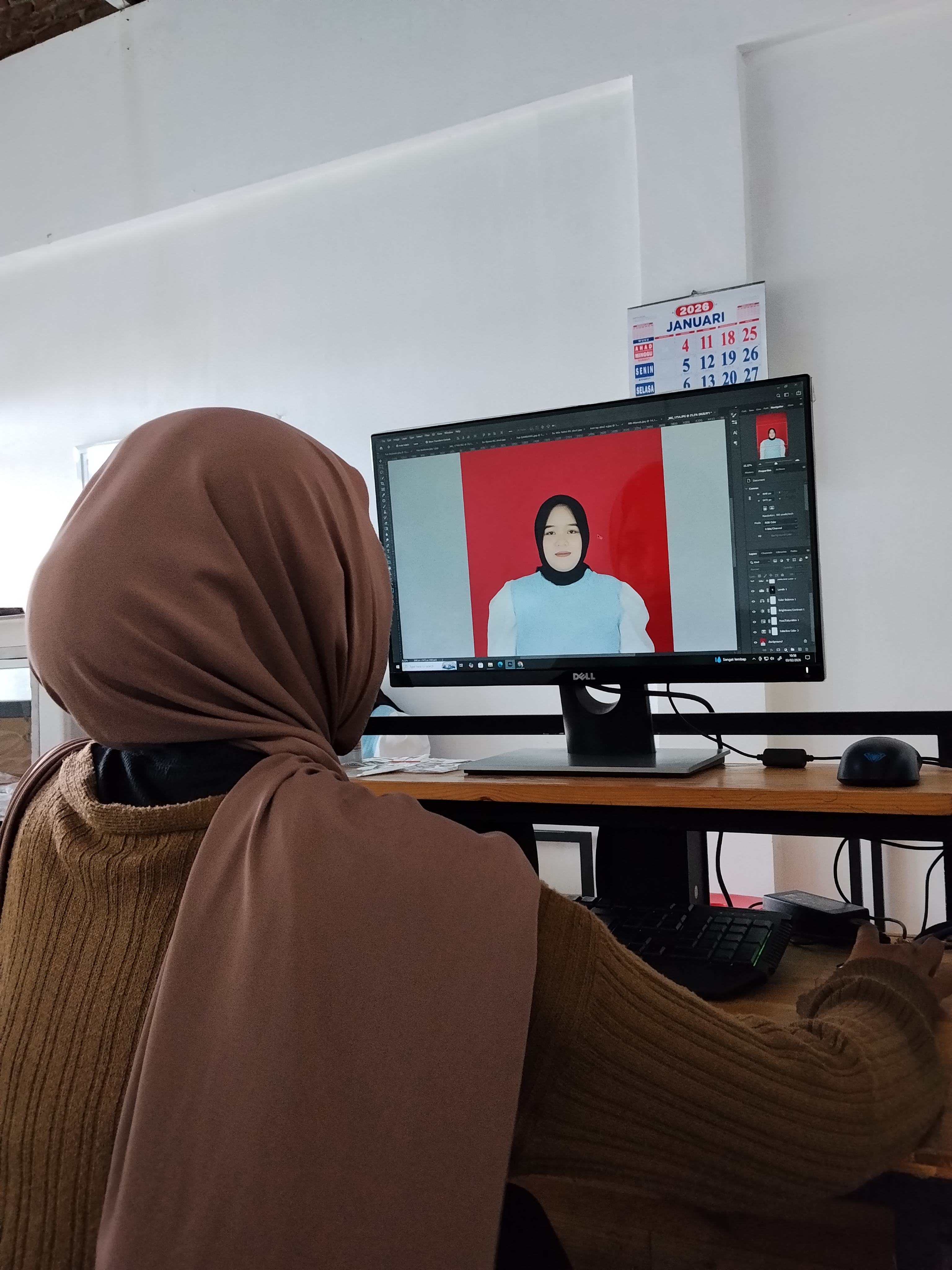 shift pagi spt biasa nyapu menyulaki menyalakan pc mengecek wa dan buku catatan, ternyata semalam ada yg foto, saya cek keperluan mengambil mmc dari kamera kemudian mengedit foto mentah