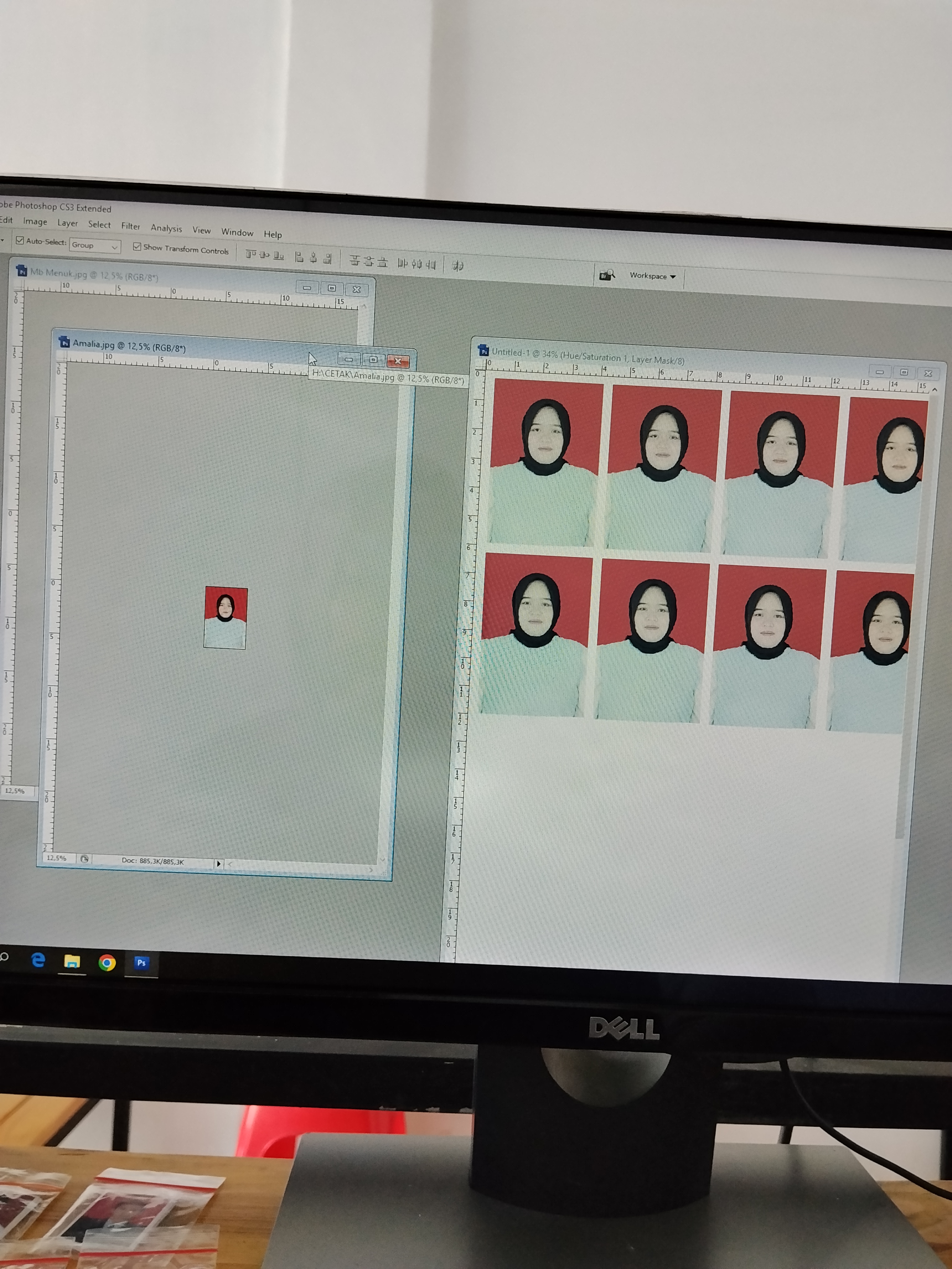 shift pagi disuruh edit pasfoto nikah kemarin jumat, saya pilih yg senyumnya pas, kemudian sekalian saya tata dikertas 5R seperti biasa dan langsung saya kirim ke gmail dtg ibu' mau p