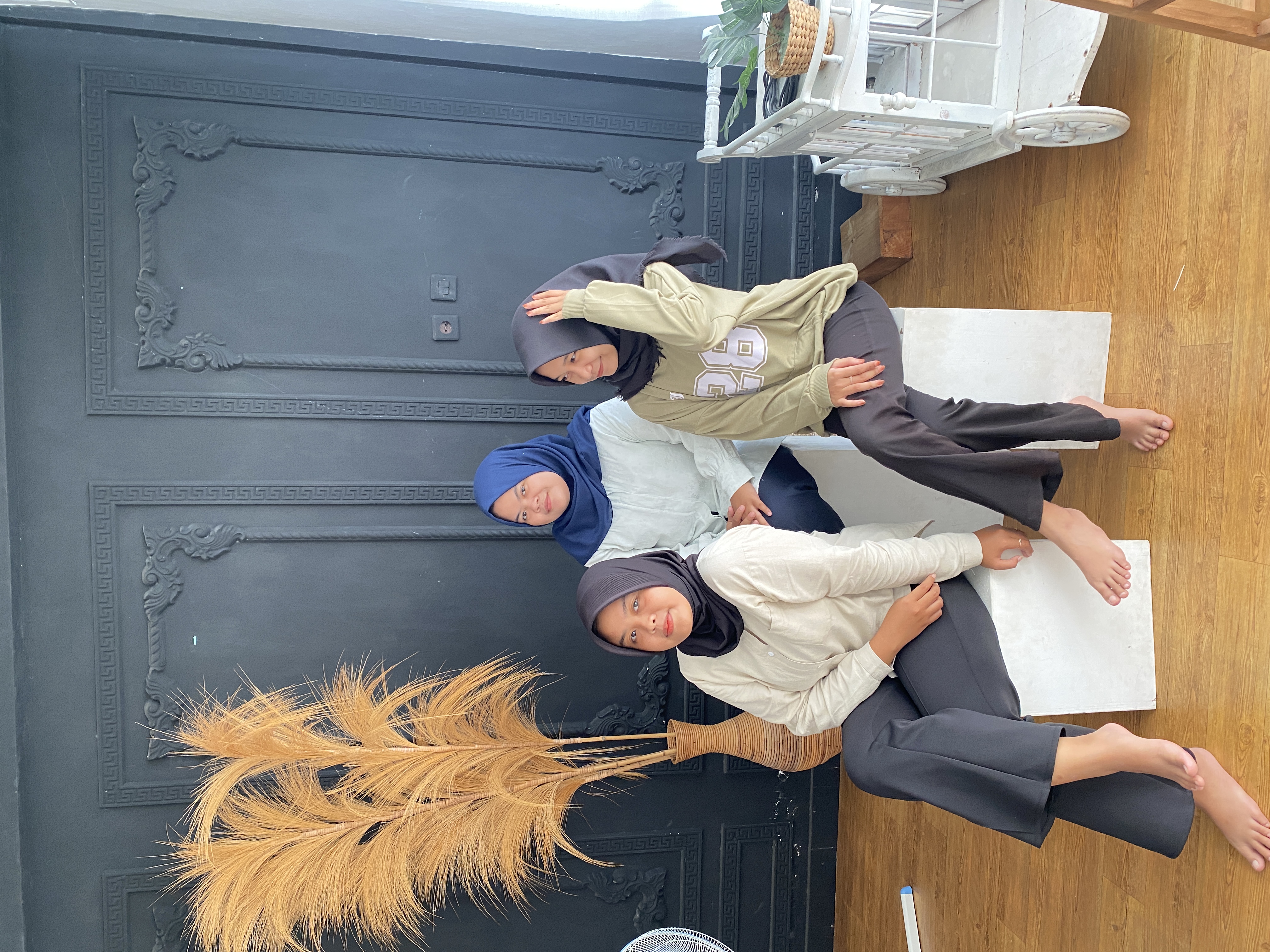 shift pagi, nyapu nyulaki menyalakan pc cek wa isi jurnal nyiapin studio buat foto maternity, bantu mindah kipas dan nyari referensi gaya pose foto, membantu nyiapin properti f