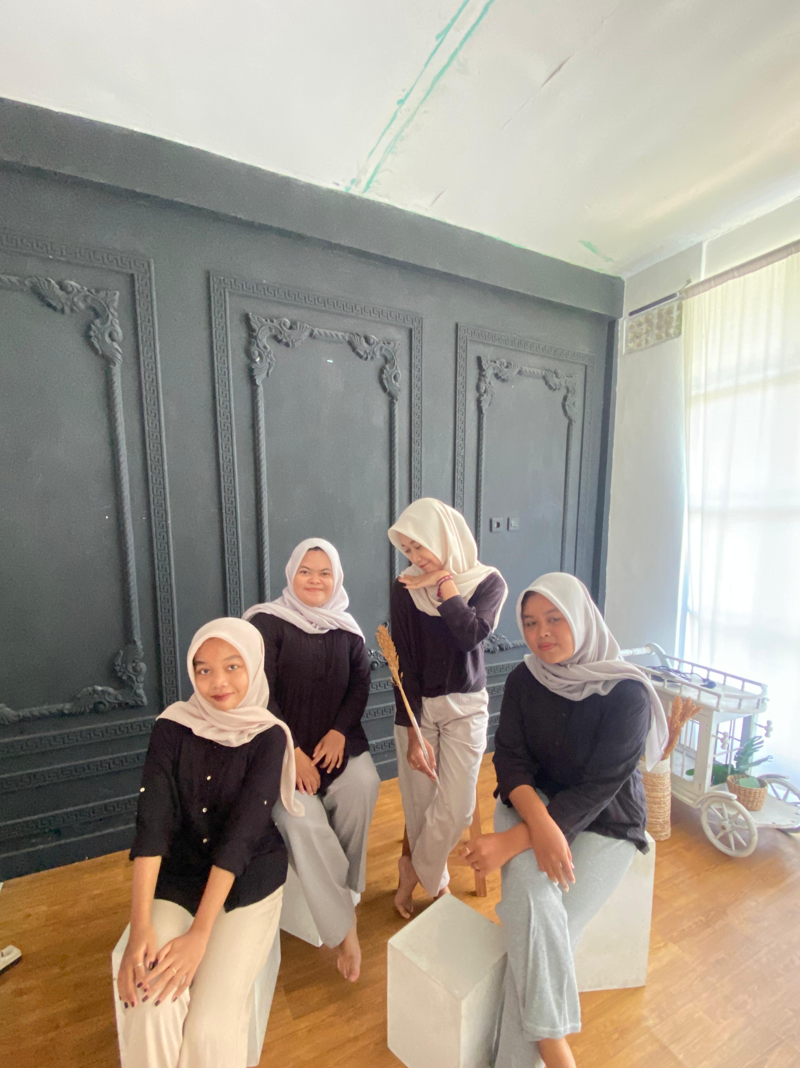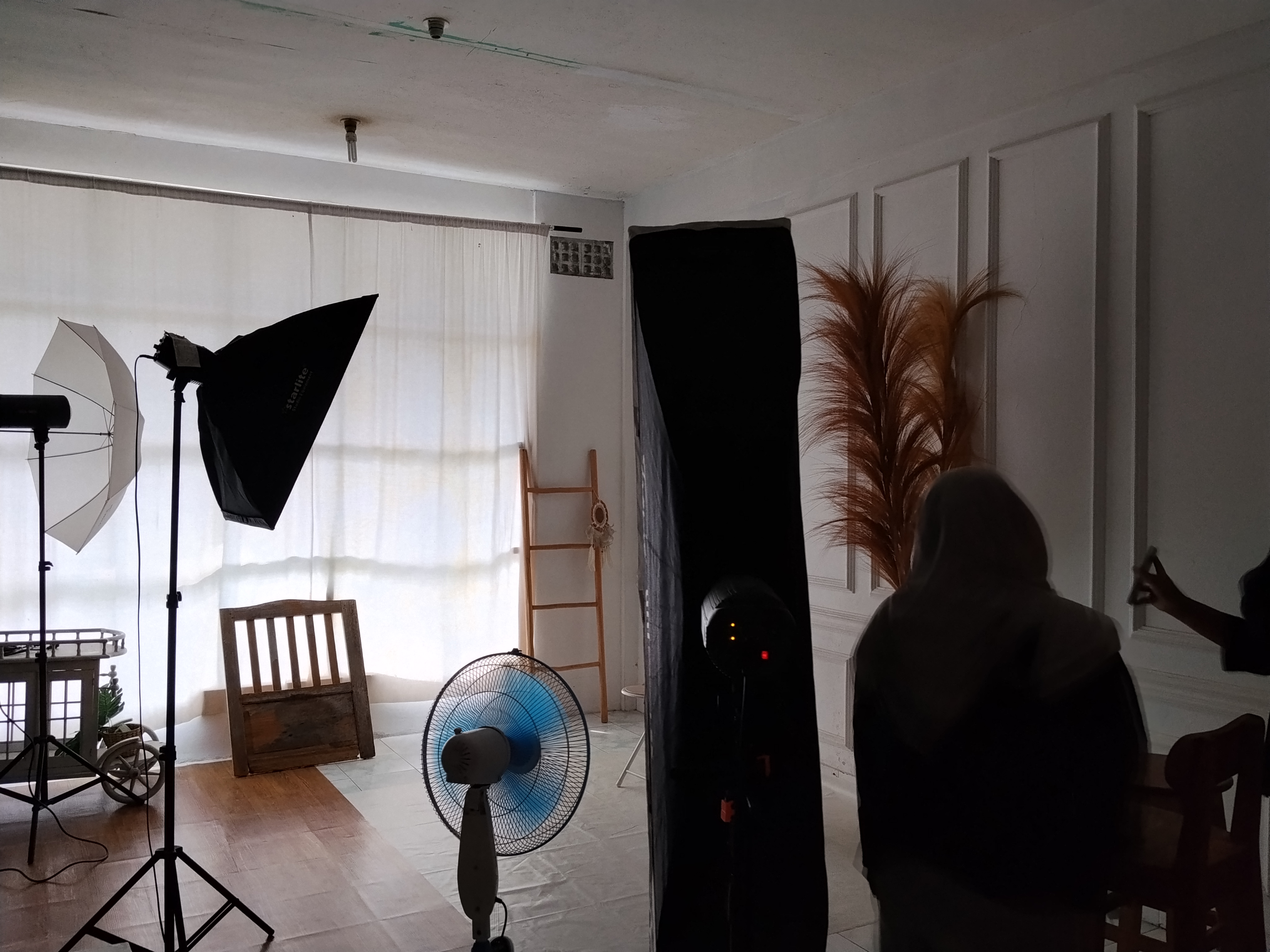shift pagi, nyapu nyulaki menyalakan pc cek wa isi jurnal nyiapin studio buat foto maternity, bantu mindah kipas dan nyari referensi gaya pose foto, membantu nyiapin properti f
