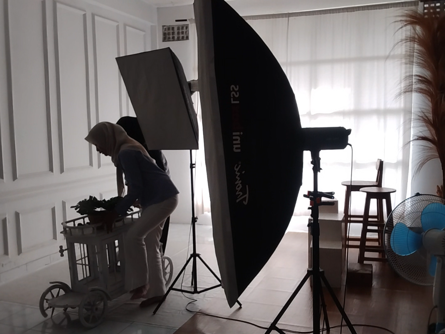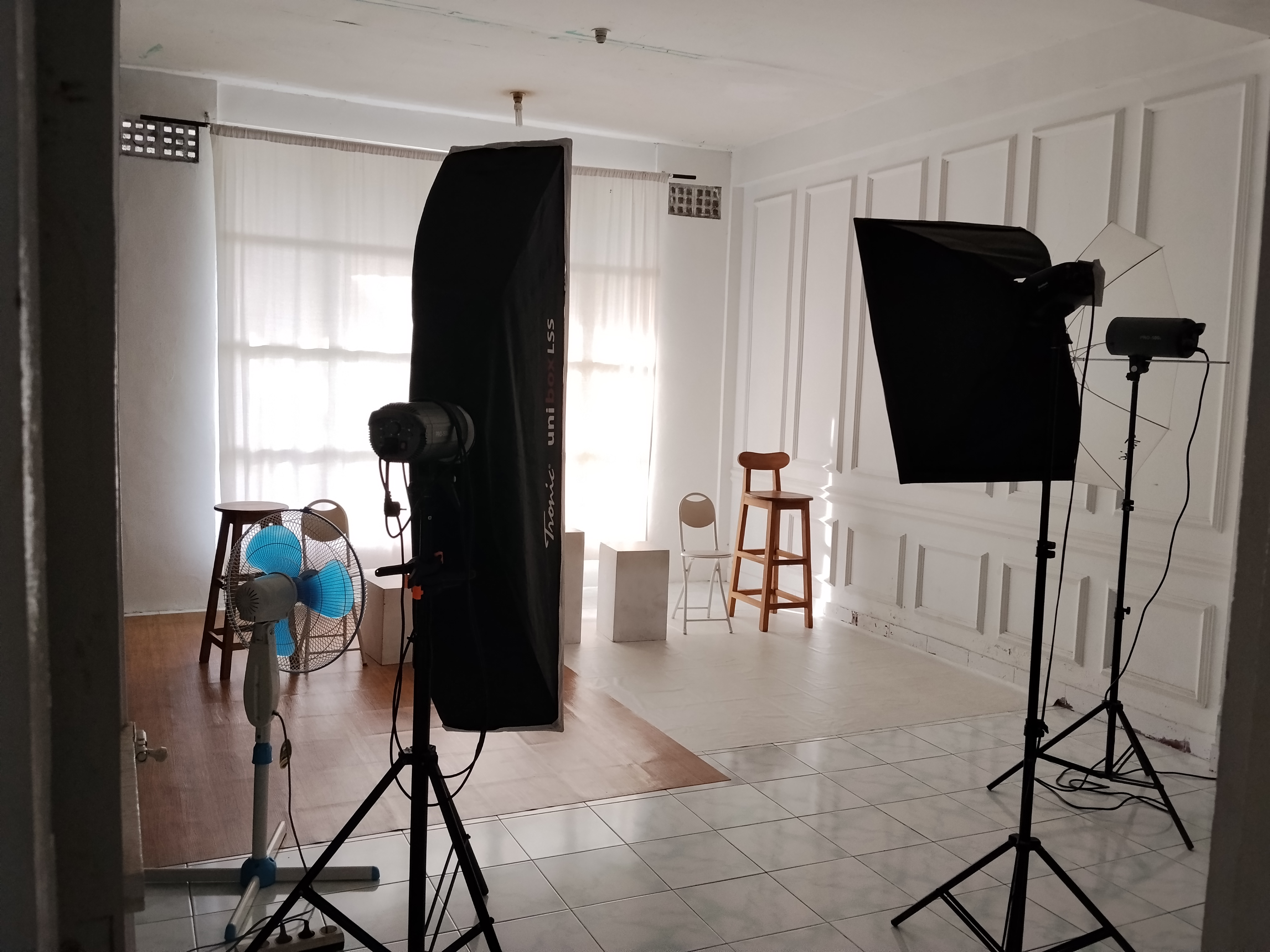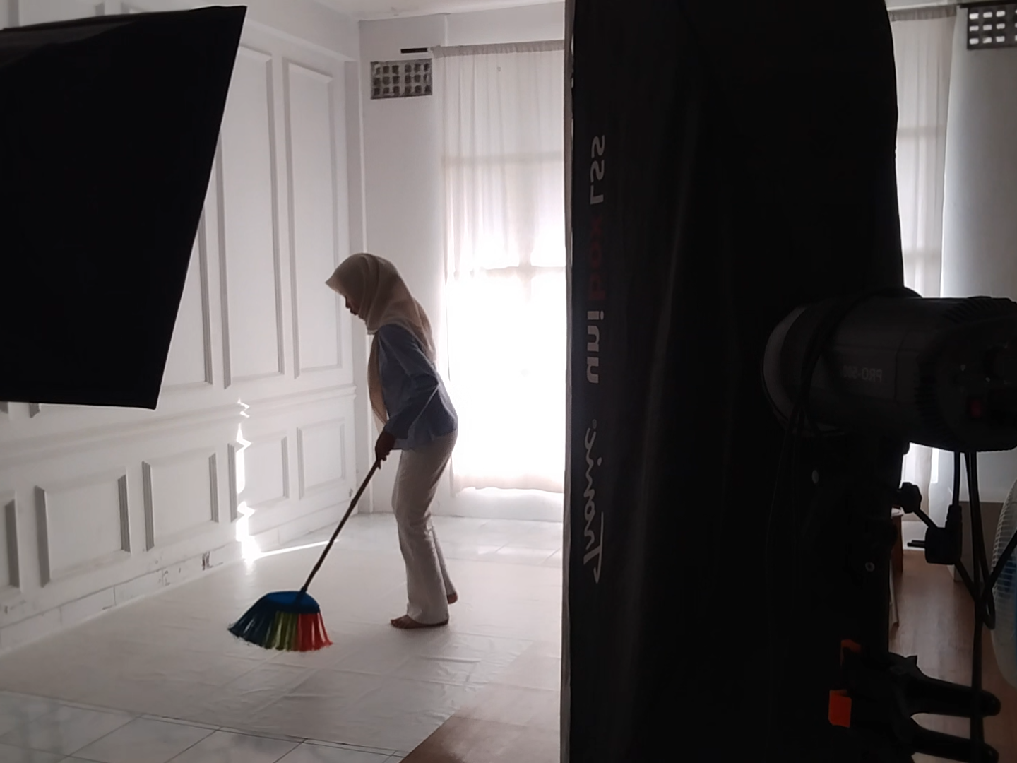 saat sore hari Mas Dimas meminta kita untuk menata studio karena besok akan dipakai untuk foto studio 21 orang, sudah mendapat arahan saya dan yuli bergegas menuju studio, memindahkan properti (daun, pot, kereta, tangga, kayu, hiasan, kursi kecil) ke bagian pojok yg tidak masuk frame, kemudian memindahkan posisi lampu kipas meja, saya mengambil sapu membersihkan area pojok gorden yg ada sarang laba' dan menyapunya agar bersih dari semua sudut studio.