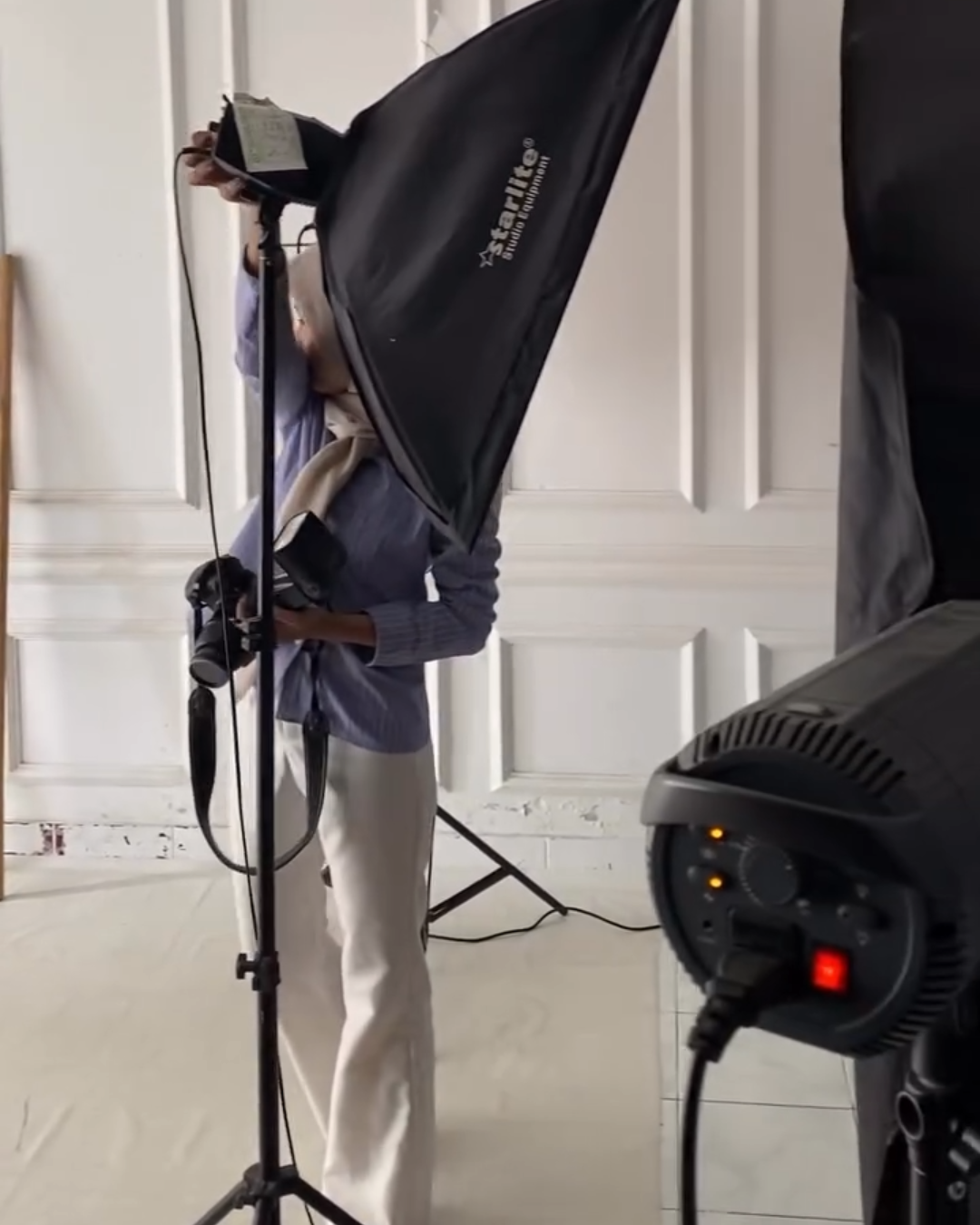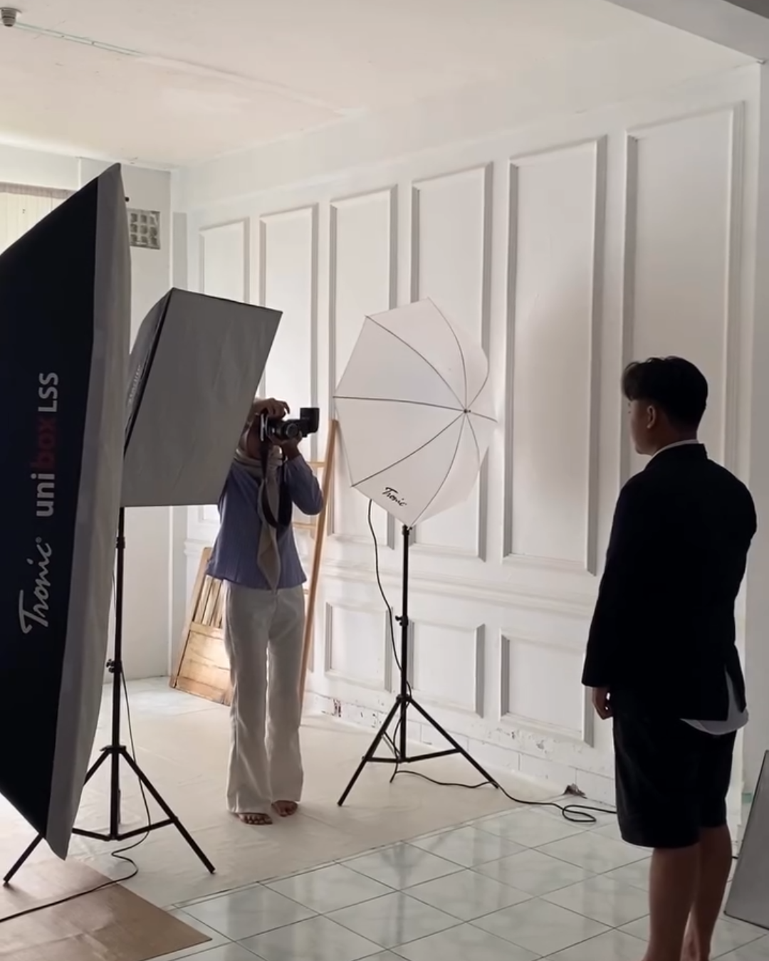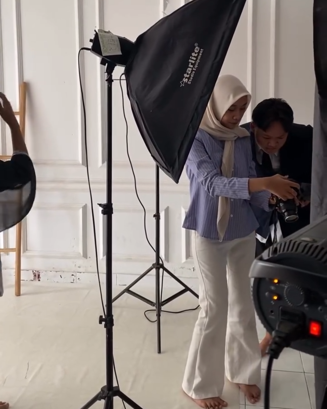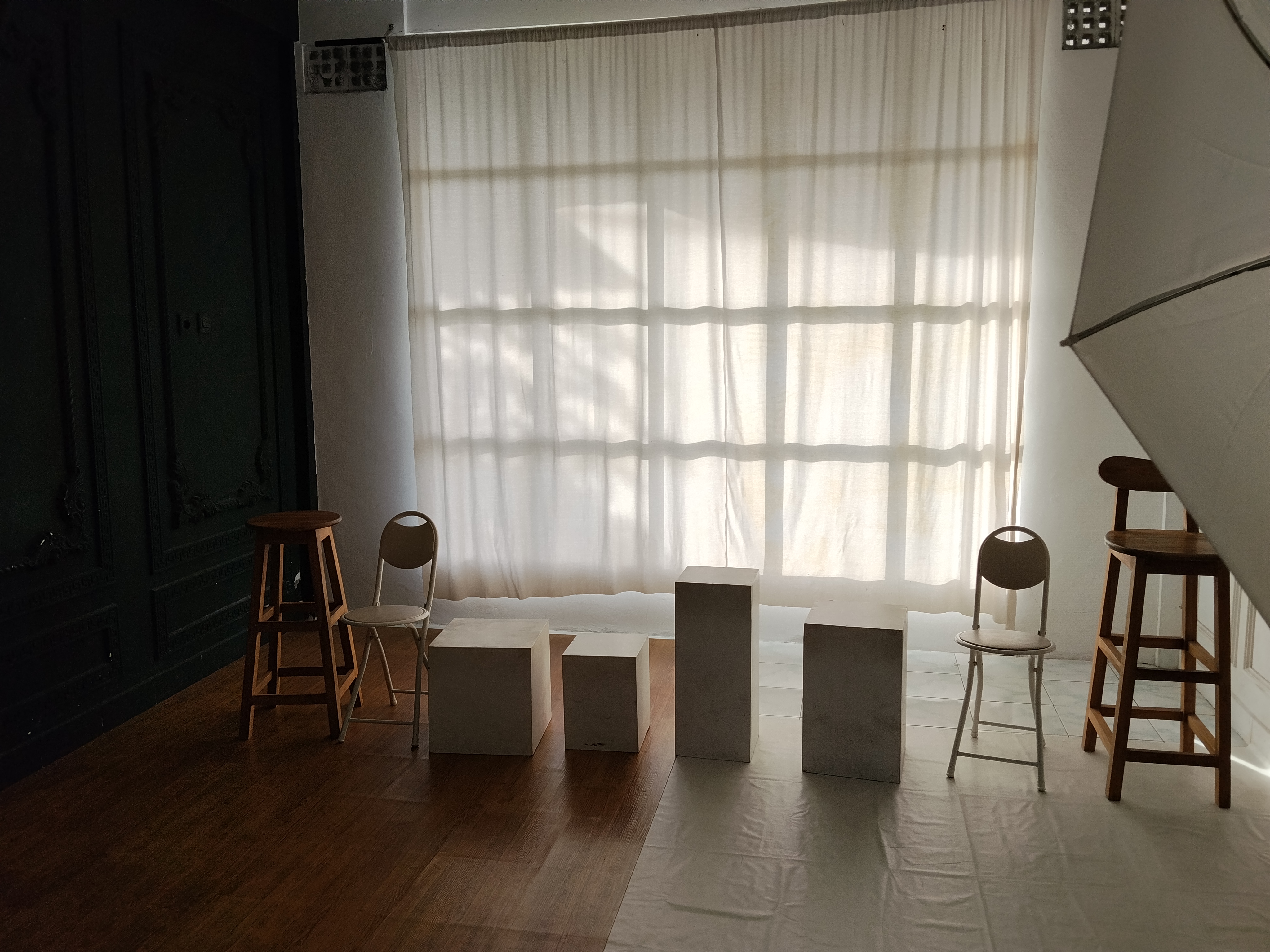 saat sore hari Mas Dimas meminta kita untuk menata studio karena besok akan dipakai untuk foto studio 21 orang, sudah mendapat arahan saya dan yuli bergegas menuju studio, memindahkan properti (daun, pot, kereta, tangga, kayu, hiasan, kursi kecil) ke bagian pojok yg tidak masuk frame, kemudian memindahkan posisi lampu kipas meja, saya mengambil sapu membersihkan area pojok gorden yg ada sarang laba' dan menyapunya agar bersih dari semua sudut studio.