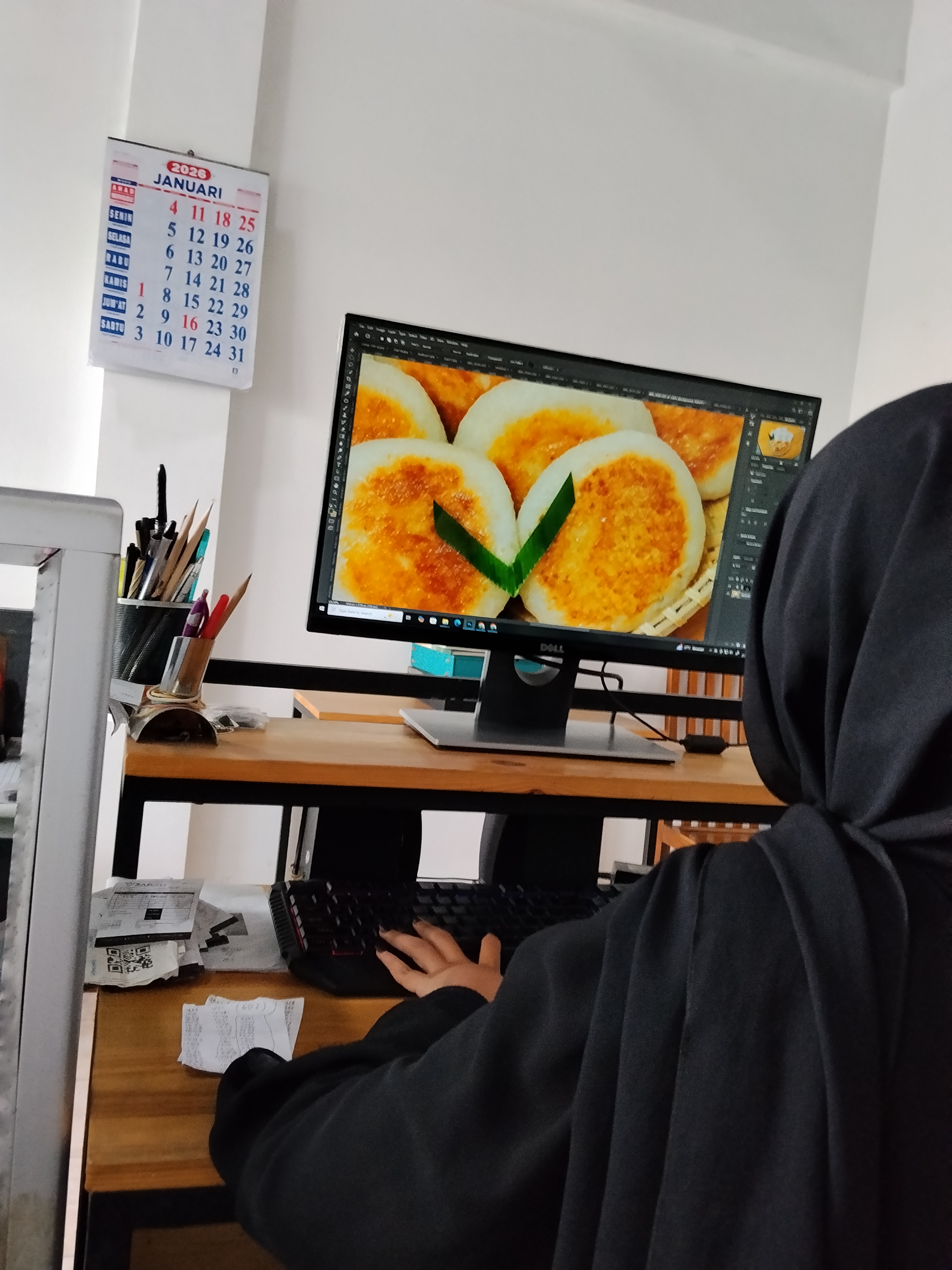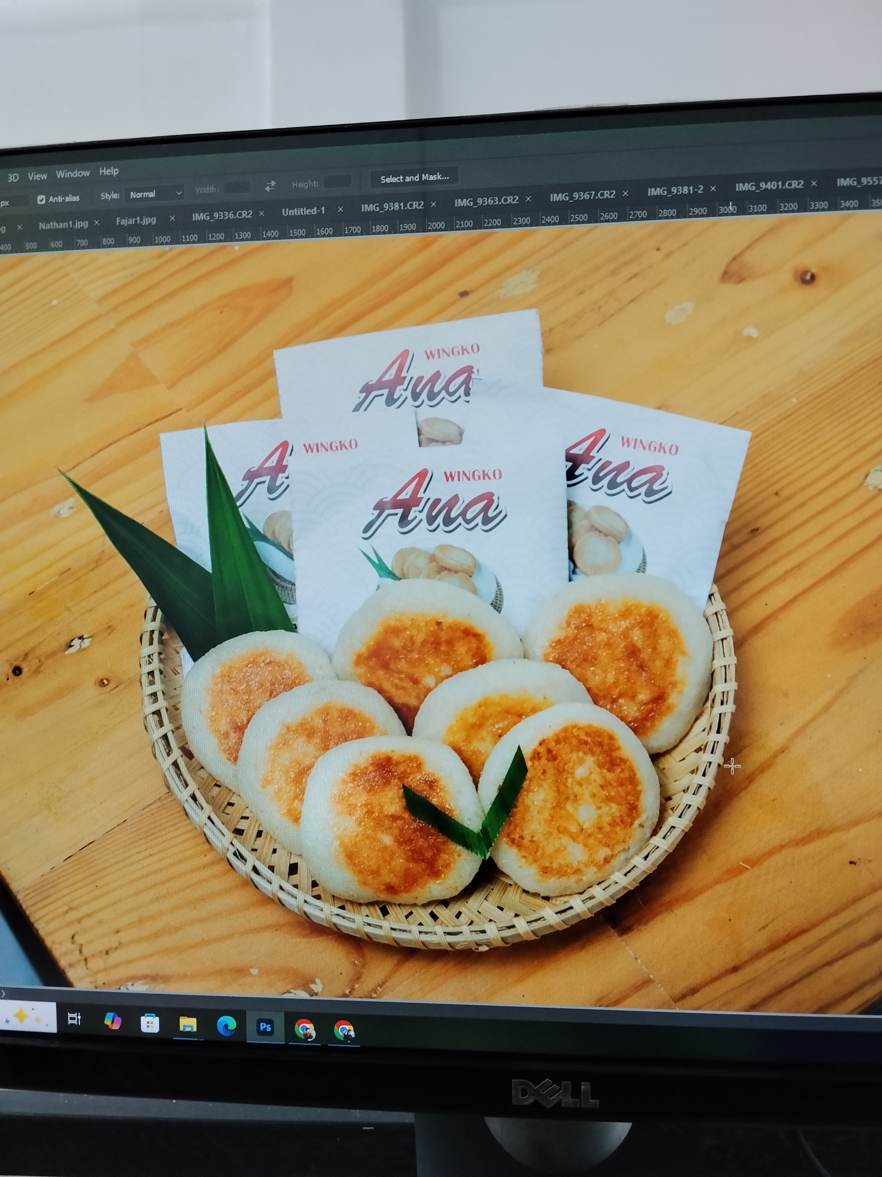 kemudian sore hari datang klien foto wingko mau milih foto, mas dhimas mengajari kami cara mengeditnya agar terlihat sempurna dan nyata hasil dari jepretan kami dan editan kami, saya mengedit menyempurnakan bagian wingko yg bolong dibuat rata bulat, brush bagian yg gelap agar merata warna matangnya, mengubah yg gosong jadi medium, merubah warna daun pandan agar cerah, menerangi bagian gelap menggunakan level dan terakhir saya sempurnakan bentuk agar bulat