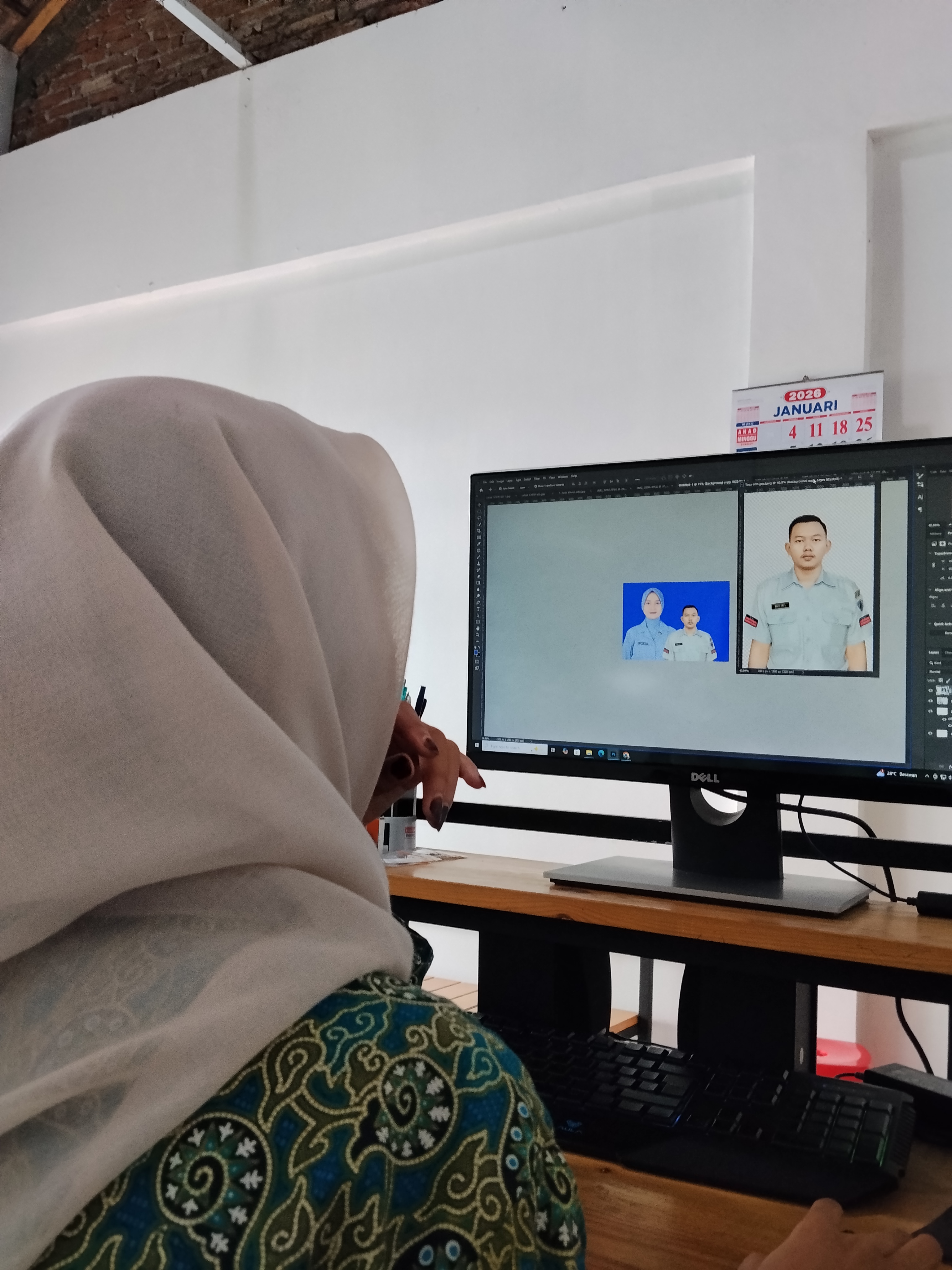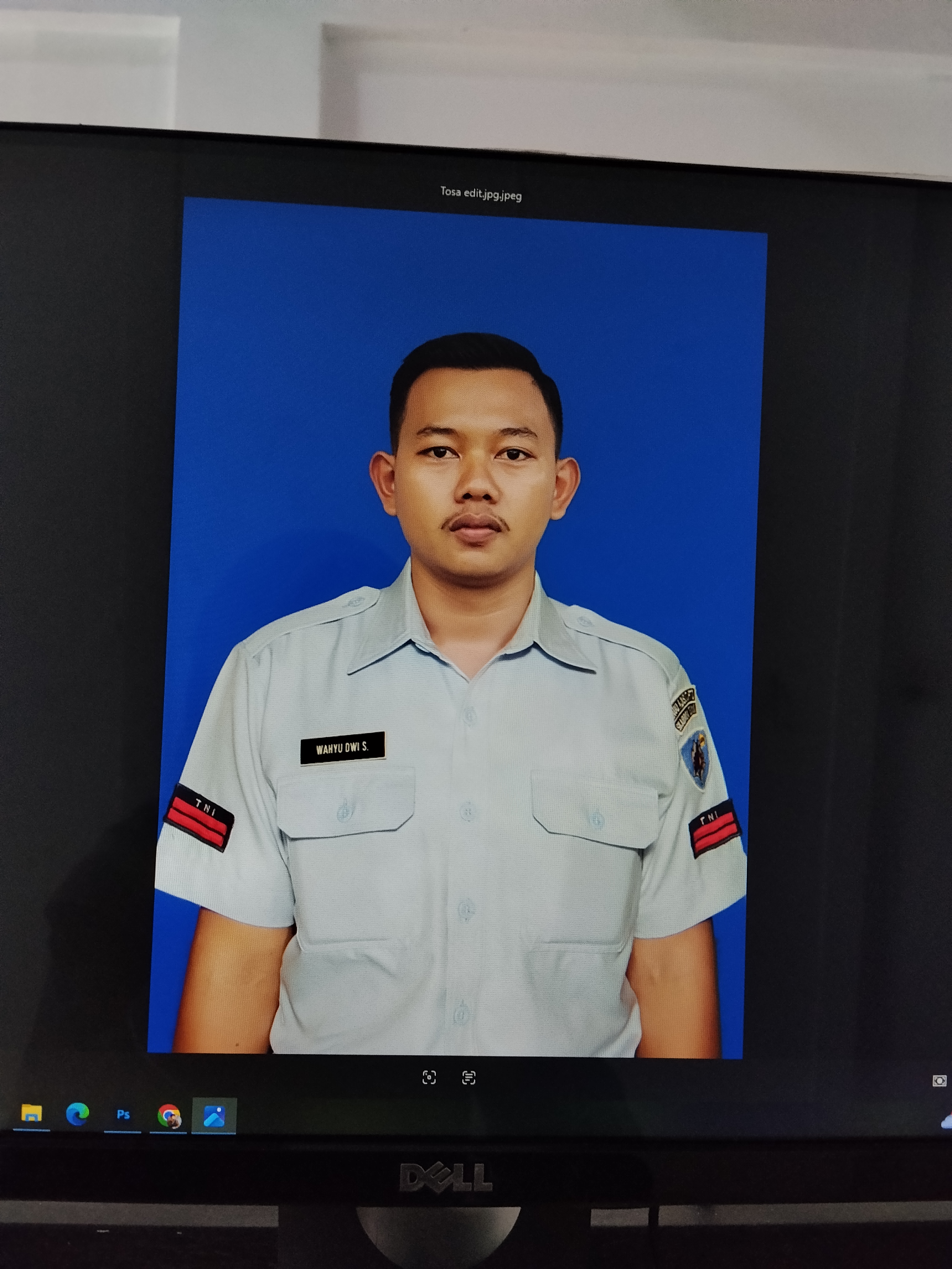 siang pas mkn siang ada cwk foto baju persit, sy siapkan kamera, lalu diberi arahan mas dimas apa yg perlu diedit dicek diselesaiin hari ini (penataan foto 2×3 3×4 4×6, ukuran kertas 4R 5R, ukuran kanvas, cara menggabungkan foto 2 org) karena mau ditinggal pergi,