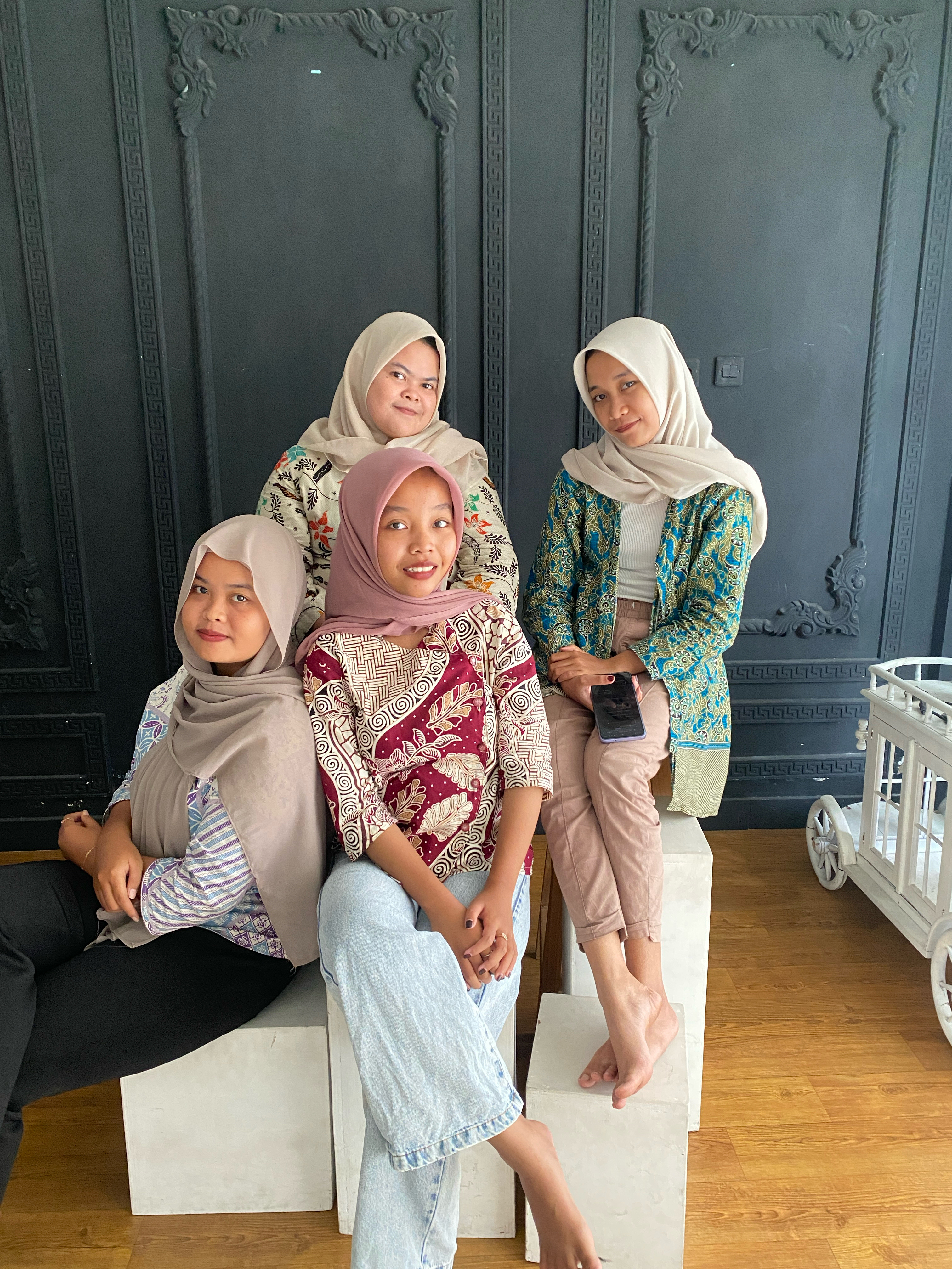shift pagi, nyapu nyulaki menyalakan pc cek wa isi jurnal nyiapin studio buat foto maternity, bantu mindah kipas dan nyari referensi gaya pose foto, membantu nyiapin properti f