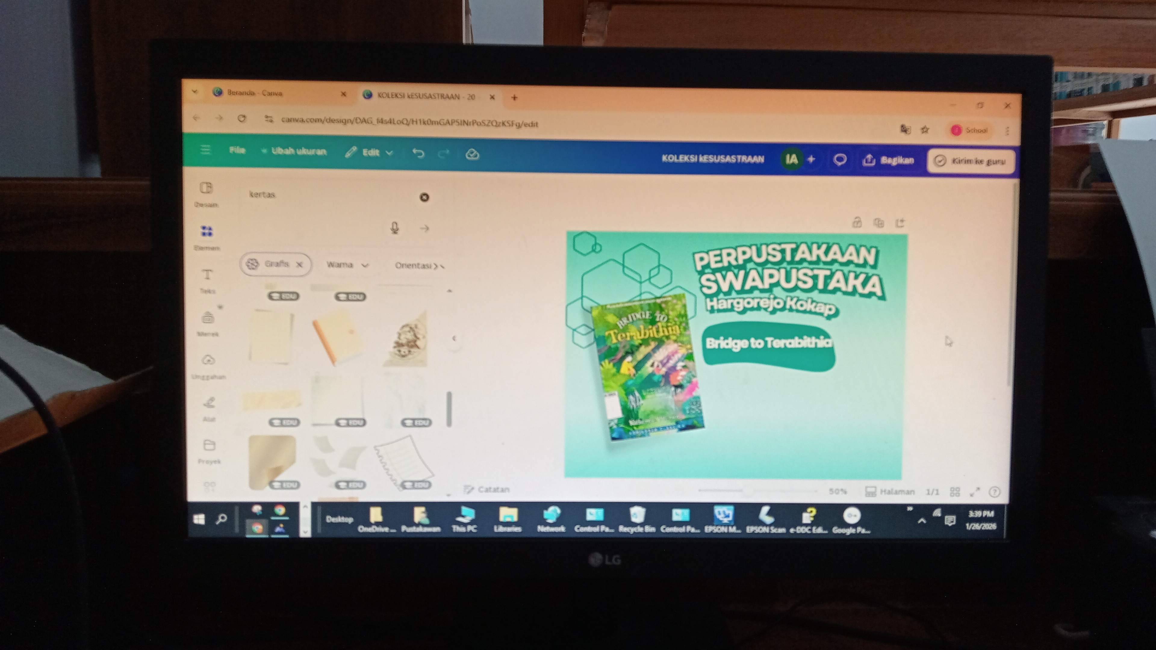 - Mengedit infografis buku perpustakaan.