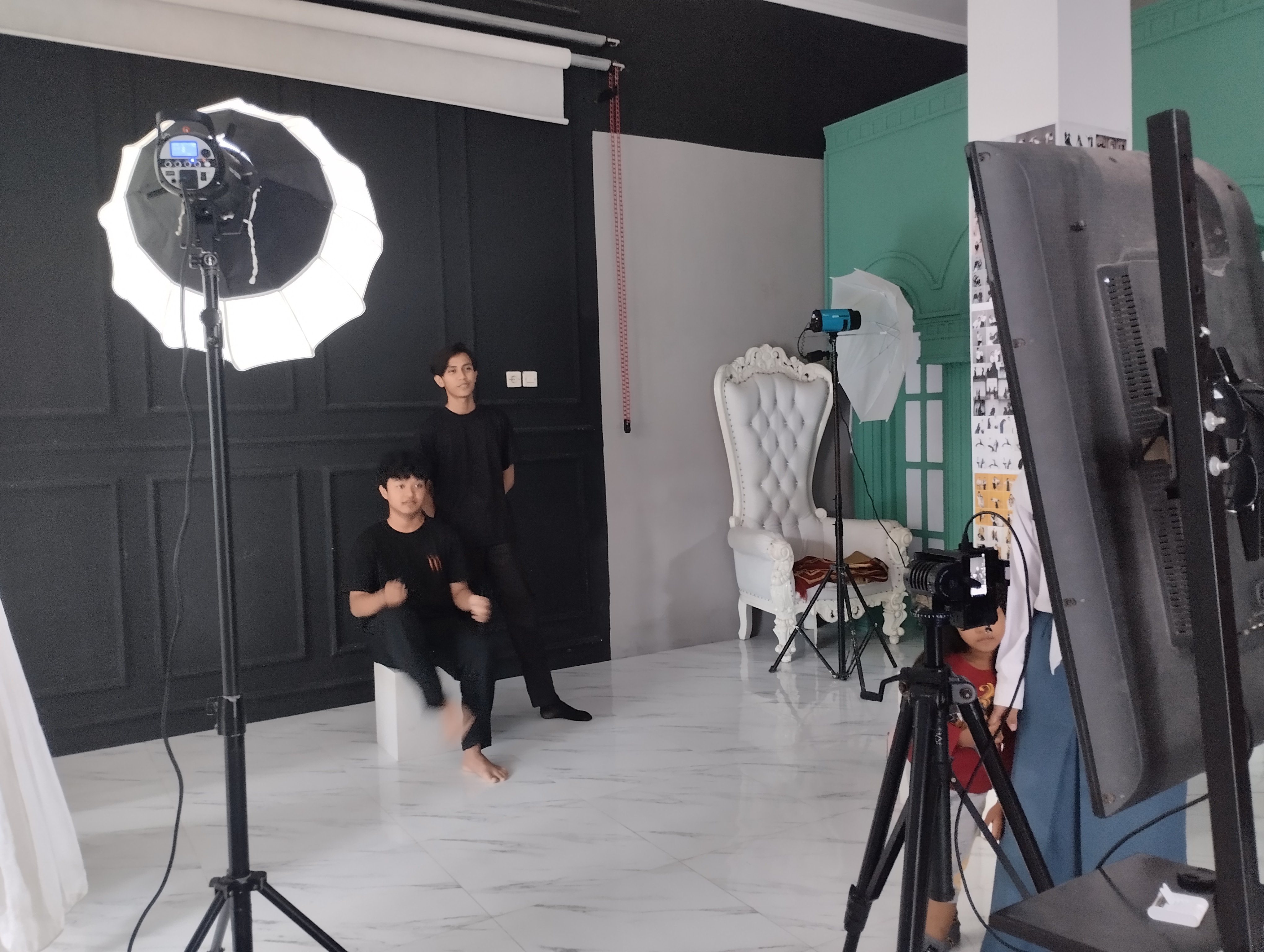 Kegiatan hari ini fokus ke setup self photo dan praktik langsung. Siswa jadi lebih paham cara mengatur pencahayaan dan peralatan supaya hasil foto terlihat rapi dan sesuai background.