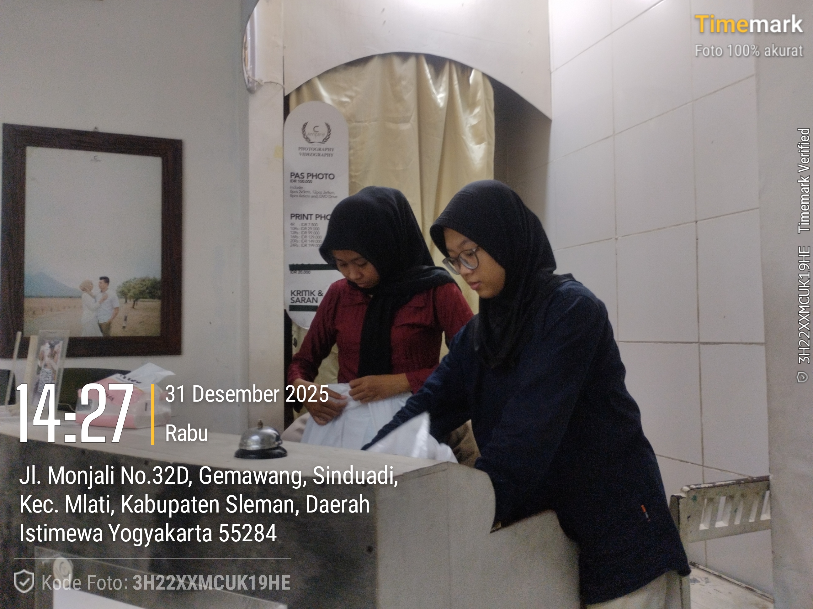Rabu, 31/12/25 - haloo semuaa, jadi hari ini seperti hari hari sebelumnya, datang pukul 10.30 dilanjutkan dengan mempersiapkan studio, dari menyapu, menyiram tanaman, dan juga mempersiapkan pc studio. setelahnya kami bersantai sembari menunggu mba jeje dan juga 1 customer yang sudah booking.