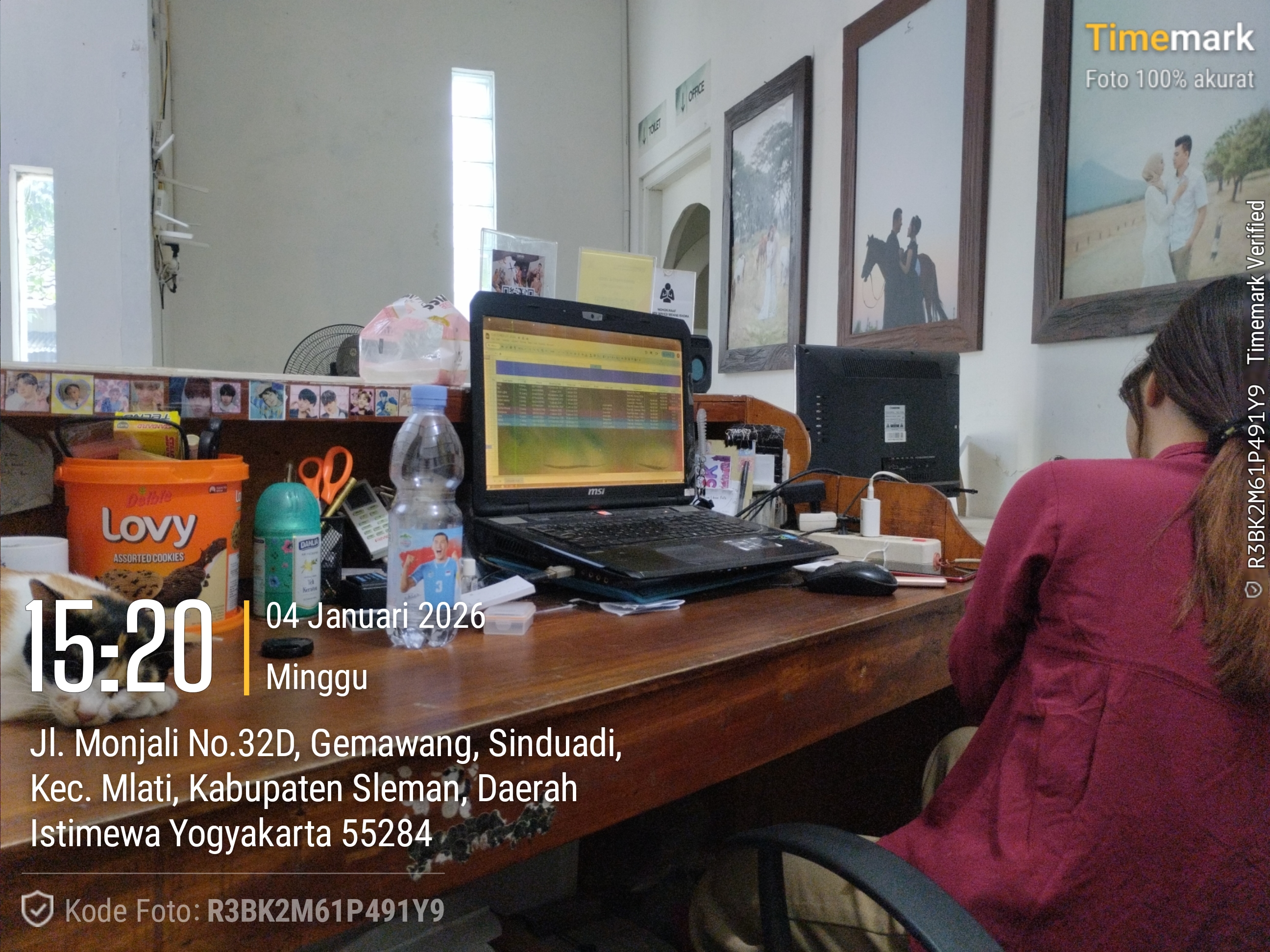 Ahad, 4/1/26 - haloo semuaa, jadi hari ini seperti hari hari sebelumnya, datang pukul 10.30 dilanjutkan dengan mempersiapkan studio, dari menyapu, menyiram tanaman, dan juga mempersiapkan pc studio. setelahnya kami bersantai sembari menunggu mba jeje dan juga 3 customer yang sudah booking.