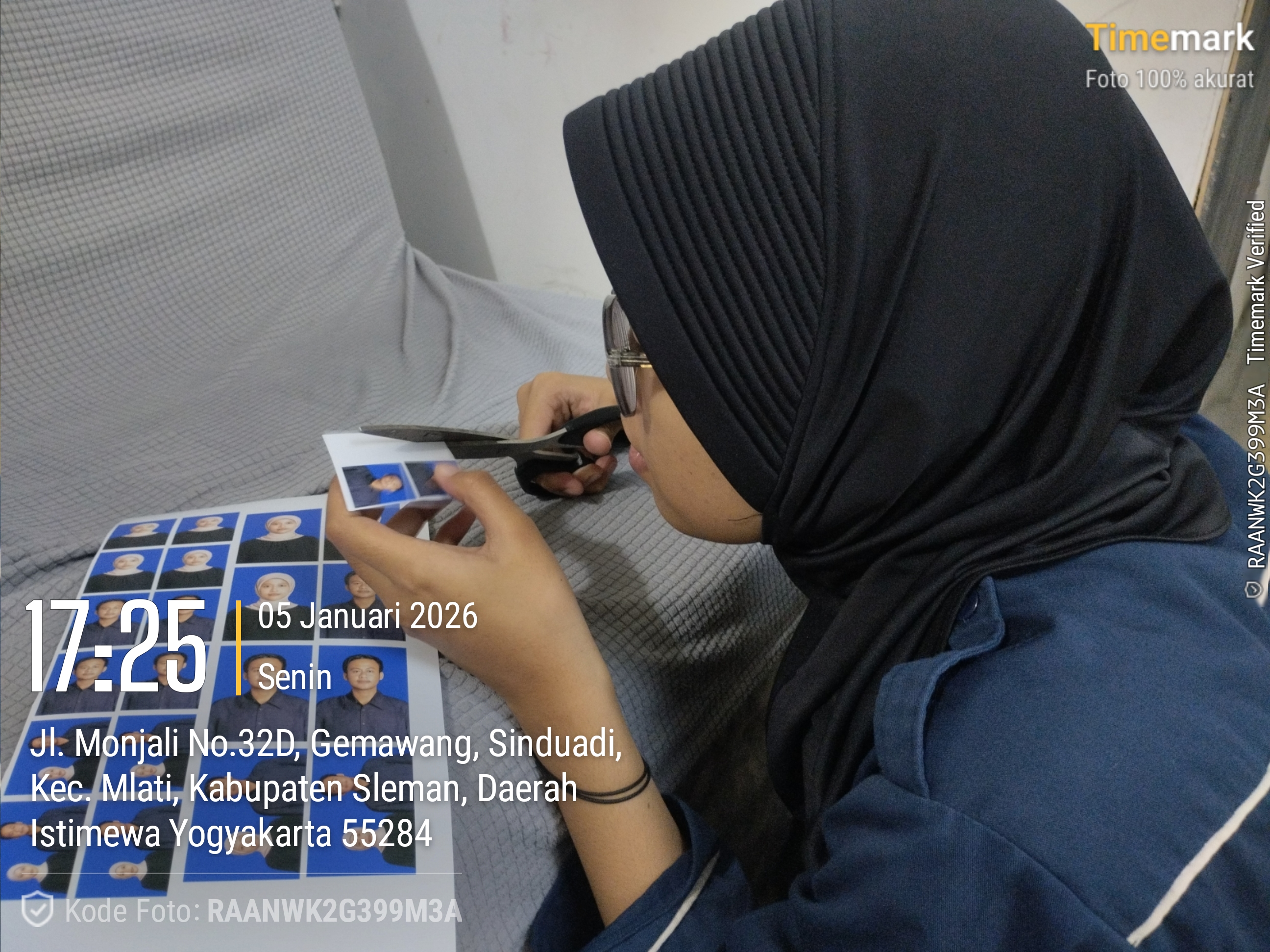 nah kalo tidak ada customer seperti ini, kami biasanya gunakan waktu kami untuk mengedit konten yang kemarin sudah divideo. kadang kami juga mengisi web jurnal. kebetulan hari ini ada barang yang harus kita packing, hari ini saya mendapat tugas untuk memotong pas foto.