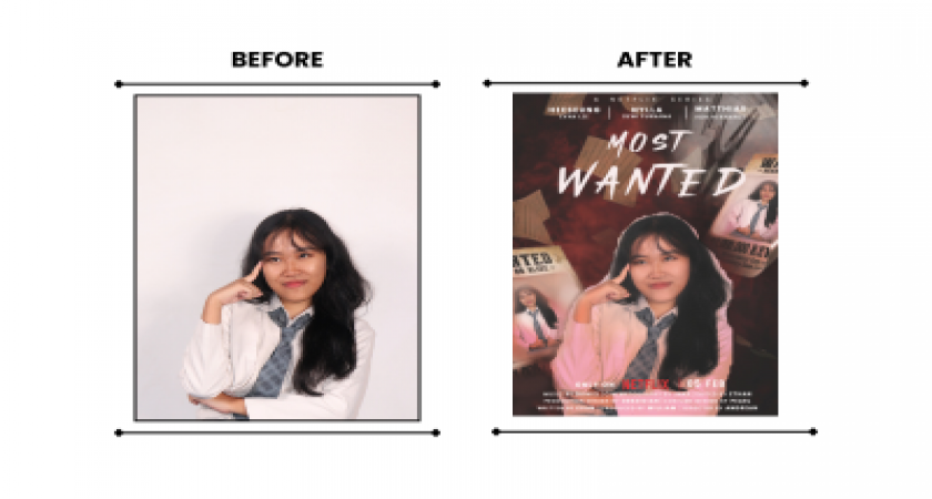 Duplikat foto orang tadi, terus taruh di dalam frame “Wanted Poster”.