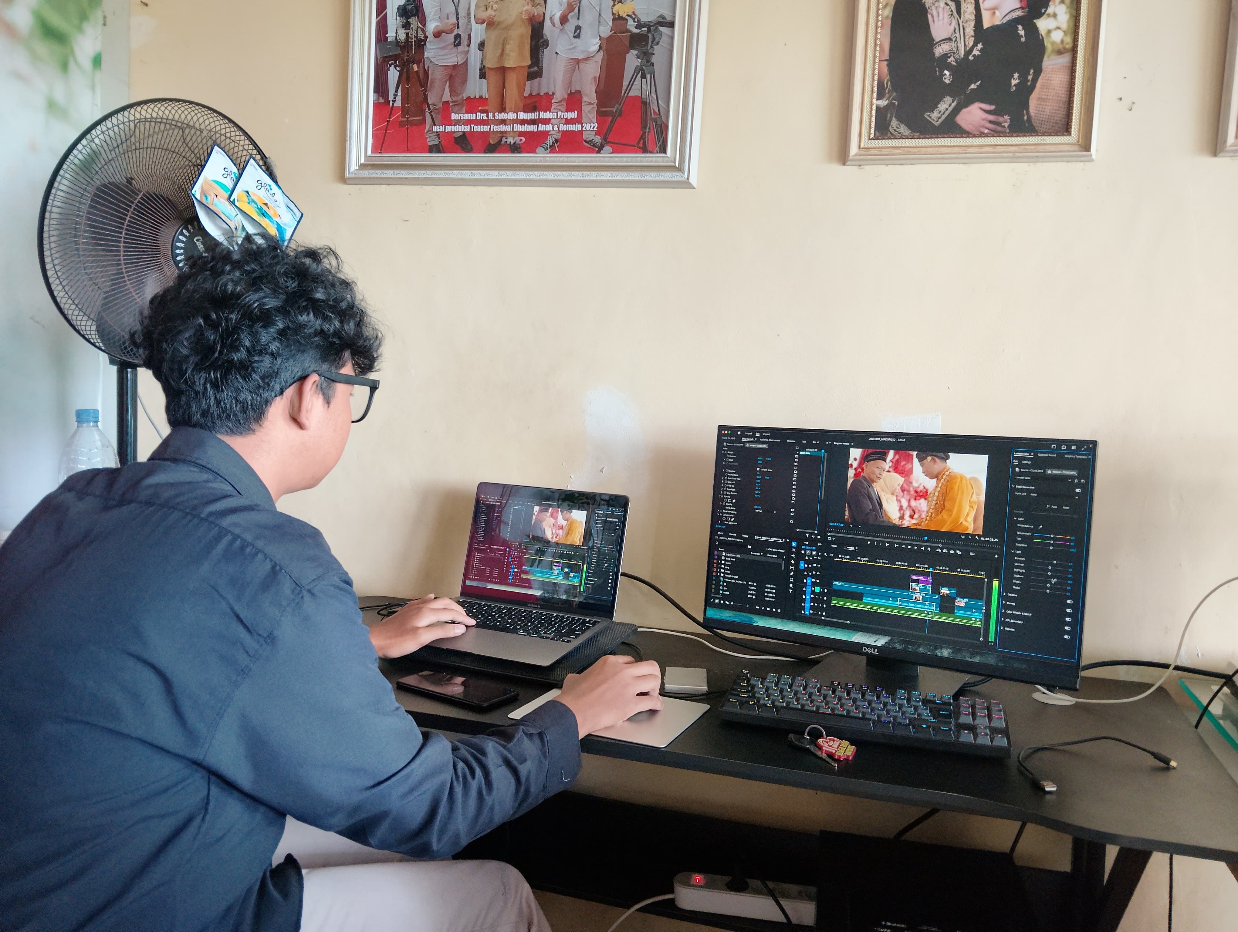Setelah briefing, para peserta melanjutkan kegiatan dengan mengedit hasil syuting wedding yang sebelumnya dilaksanakan di Omah Mbeji. Proses editing meliputi pemilihan footage terbaik, penyesuaian warna, serta penyusunan alur visual agar hasil video memenuhi standar kualitas industri.