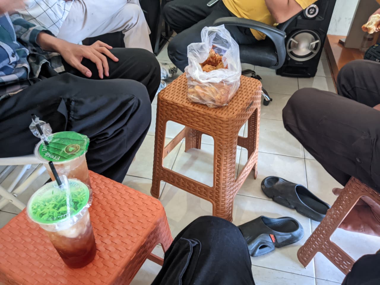 Setelah itu, saya bersama Riski mendapat tugas untuk membeli gorengan dan es teh sebagai konsumsi untuk seluruh tim. Dalam perjalanan tersebut, kami juga membeli bensin yang akan digunakan untuk membakar sampah, sebagai bagian dari kegiatan kebersihan dan perapian di lingkungan kerja.