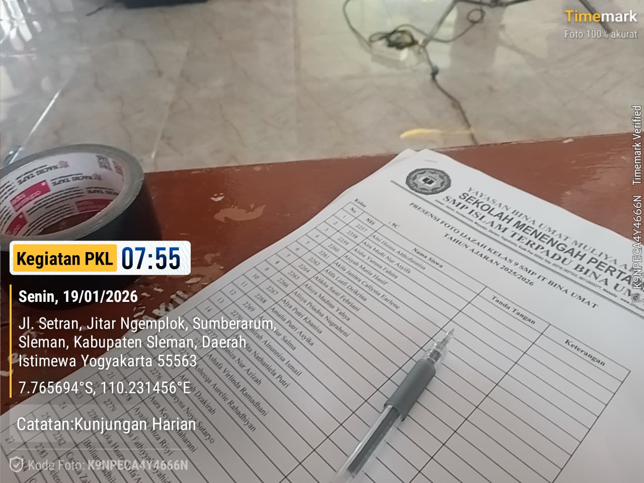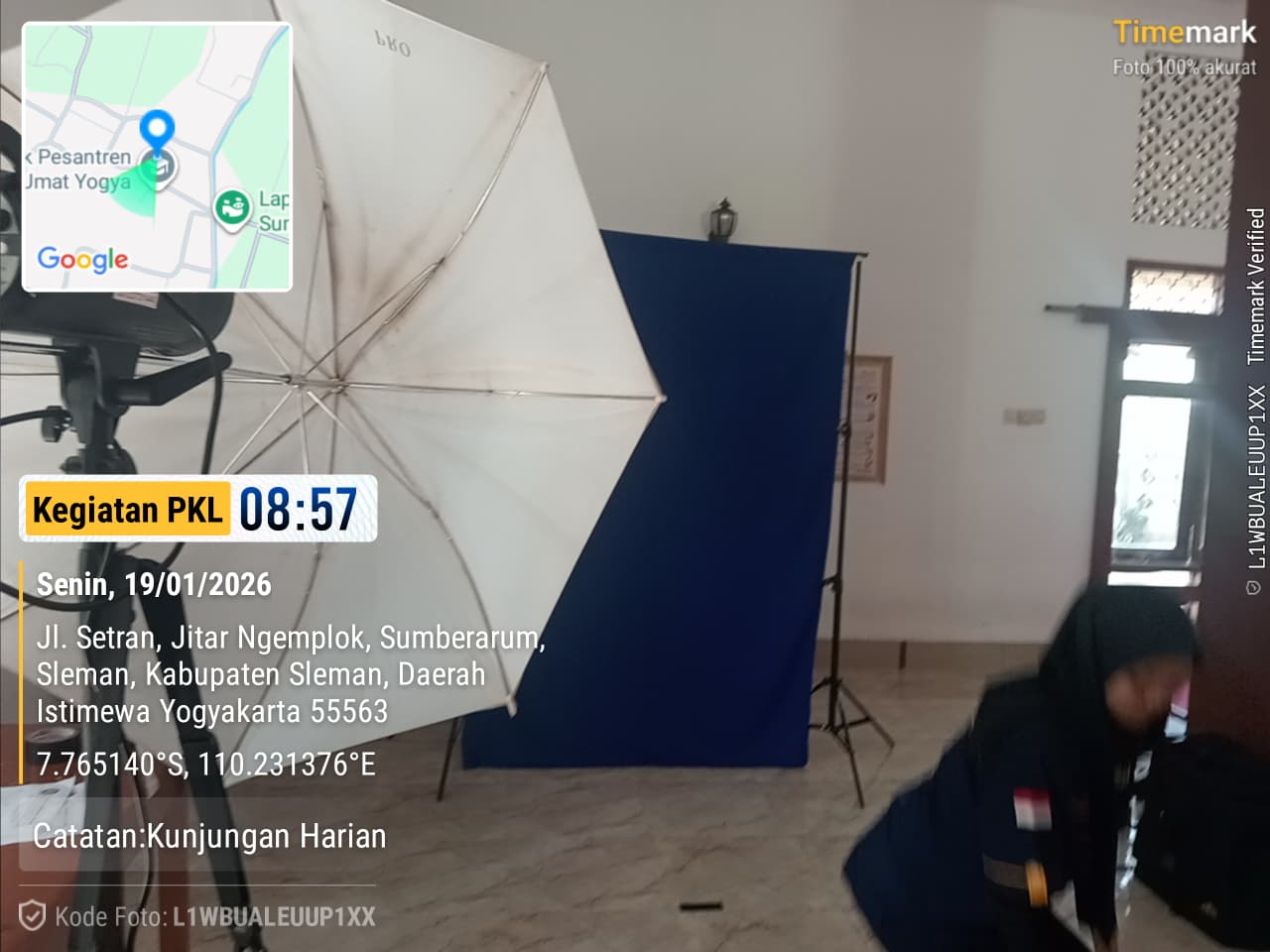 Senin (19/1/26) - Hari ini kami ber6 ngejob semua. Kami berangkat dari kost pukul 07.30. Sesampainya distudio ternyata sudah lumayan ramai crewnya. Saya ngejob di it bina umat, sama seperti minggu lalu tetapi bedanya yang kemarin memfoto murid putri smanya, yang sekarang akan memfoto murid putri smpnya. Disini crew bagian putri ada saya, Mbak Syifa dan Pak Pion. Saya berangkat dari studio pukul 07.35. Sesampainya disana saya duduk menunggu Mbak Syifa izin kepada guru di kantor. Kemudian kami mempersiapkan alat untuk pass photo nya. Disini saya bagian menulis dsc. Setelah selesai semua saya dan Mbak syifa membereskan alat-alat fotonya selagi memnunggu Pak Pion memotret foto bersama sekelas. Selagi menunggu juga saya dan Mbak Syifa saling bercerita tentang dulu smk dan tentang perguruan tinggi. Saat sudah selesai semua kami mampir diwarung mieayam bakso. Selesai makan kami kembali kestudio, hari iini ada mbg dari sekolah yang diambillkan oleh mas wawan karena rumahnya dekat sekolah. Kegiatan saya hari ini selain melayani customer saya juga memotret customer yang akan pass foto.