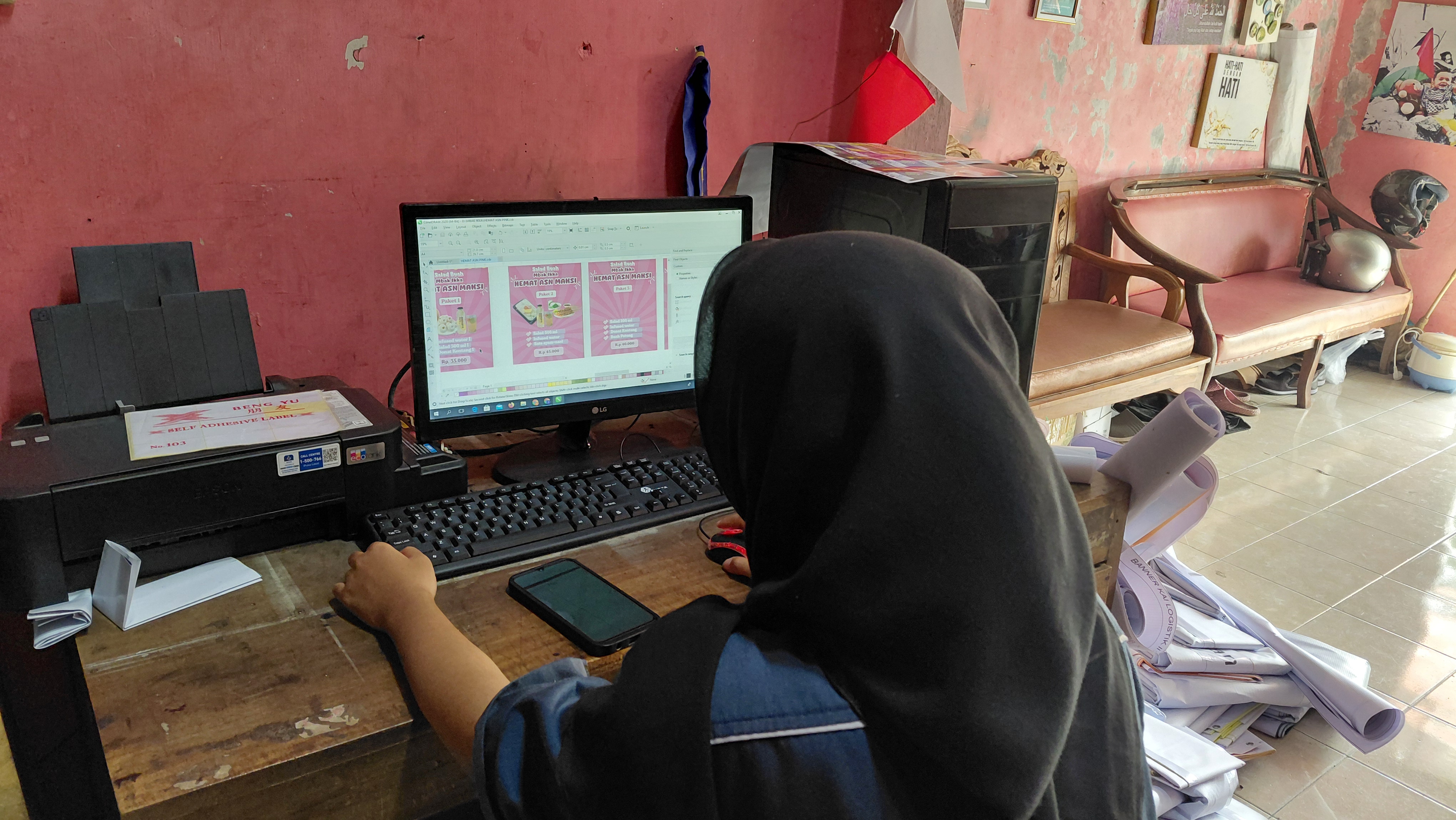 A. Unit Kerja/ Pekerjaan: Desain Banner Finishing Taplak + Lanyard Membuat Konten Cutting Sticker Waktu: 08.00-16.00 WIB Tempat: Jl. Tobanan, Serut, Pengasih, Kec. Pengasih, K