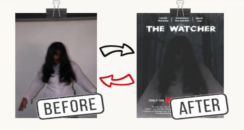 - Gunakan Text Tool (T) → ketik THE WATCHER.