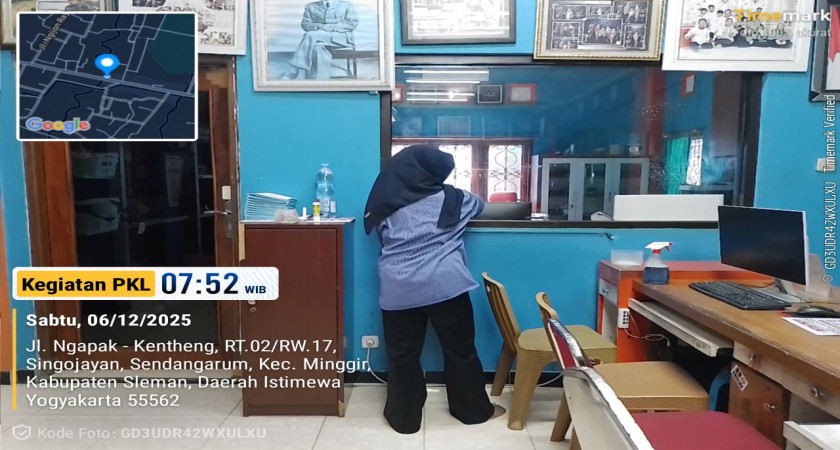 (Jum'at, 23/01/26) Hari ini saya mendapatkan shift pagi bersama Dila, berangkat pukul 07.20 WIB. Sesampainya di tempat PKL, kami berdua melakukan kegiatan pagi. Setelah itu berjaga