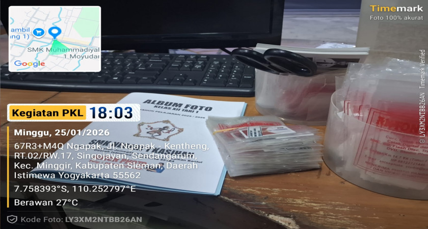 (Minggu, 25/01/26) Hari ini saya bersama Leni dan Dila berangkat pukul 10.50 WIB. Setibanya disana tidak ada pekerjaan jadi kami hanya menunggu didepan menunggu costumer yang tiba. Namun sempat pukul 18.00 WIB terdapat tempelan dan saya pun dengan segera menempel pas foto tersebut hingga pukul 20.00 WIB.