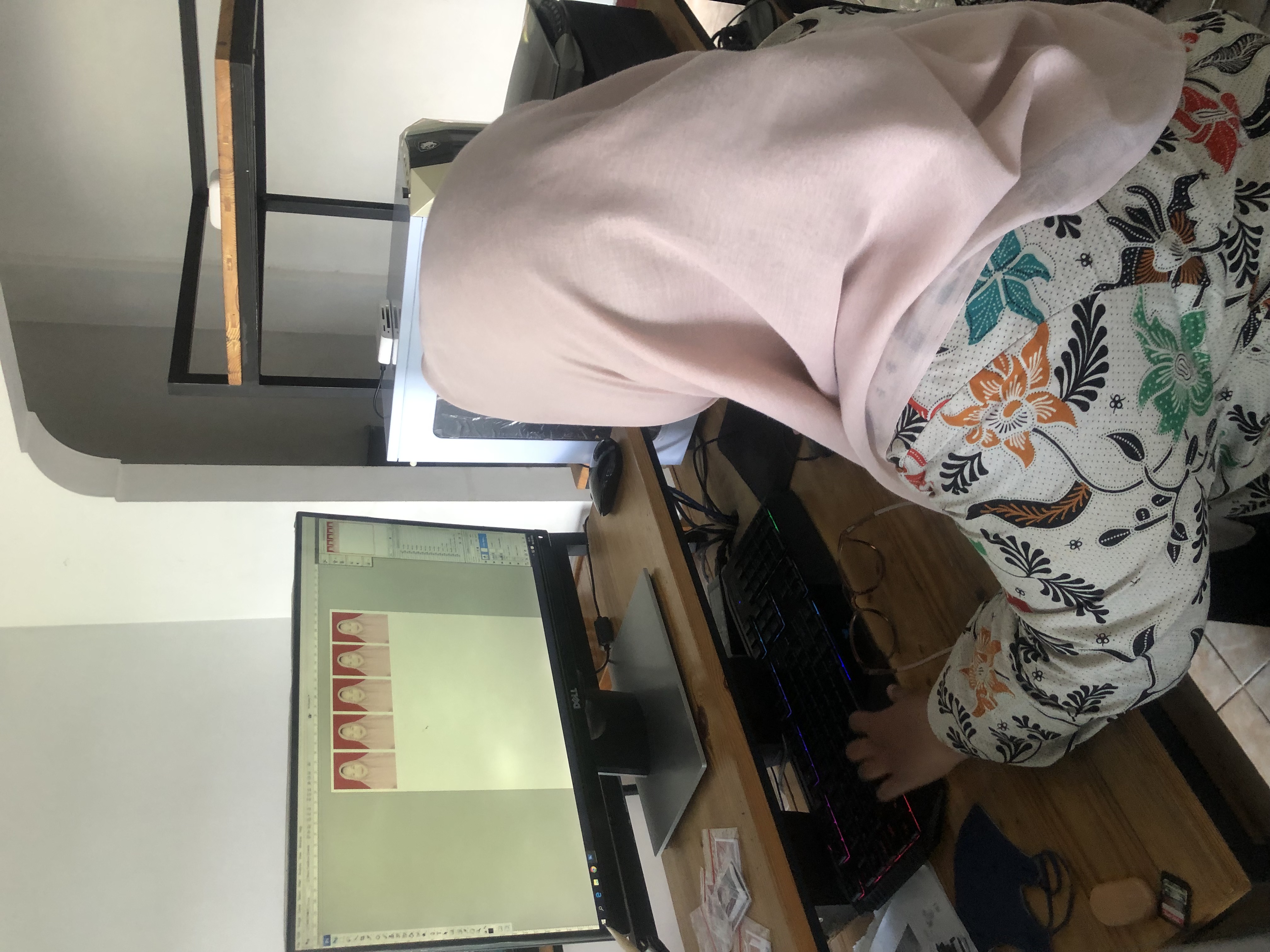 Pada (06/02/2026) saya mendapatkan shift pagi lagi. Di sini saya sampai langsung menghidupkan pc, lampu tata rias dan menyapu studio dan tempat editing. Saat saya sedang menyapu saya mendapatkan customer seorang mbak mbak yang mencari fotonya. Di sini saya mencarikan dengan menggunakan nama. Akhirnya foto tersebut ketemu, setelah itu saya bertanya kepasa mbaknya apakah foto ini akan di kirim ke wa atau mau di cetak. Mbaknya menjawab mau di cetak sebanyak 2 lembar dengan ukuran 4x8. Saat saya mengedit di pc bawah mbaknya bertanya apakah ada foto lain selain itu? Saya menjawab tidak ada karena untuk atas nama itu hanya terdapat 4 foto dengan orang berbeda. Dan mbaknya akhirnya mau menggunakan foto itu. Di sini saya mengedit foto tersebut dan mengubah setingan pada bagian level dan yuli menyiapkan kertas dan menghidupkan alat cetak. Setelah hasil cetak keluar saya dan yuli segera memotong foto tersebut.
