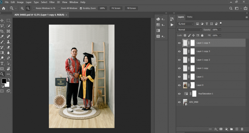 Pada tanggal 10 Desember 2025,saya melanjutkan proses editing foto studio wisuda. Kegiatan yang dilakukan meliputi penyempurnaan warna, pencahayaan, kontras, serta perapian detail pada
