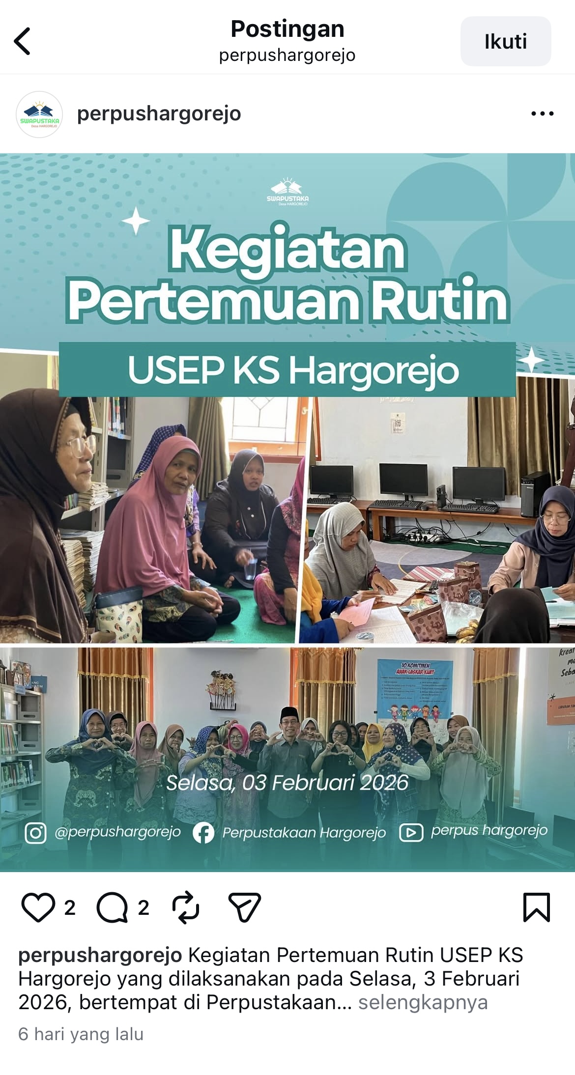- Dwi Titah Sekarimawati: Menjaga & melayani pengunjung perpustakaan, Dokumentasi acara penerjunan kkn dari umy, Dokumentasi acara pertemuan rutin usep hargorejo, Mengedit desain infografis buku perpustakaan swapustaka, Mengedit & mengupload hasil dokumentasi di medsos perpustakaan swapustaka.