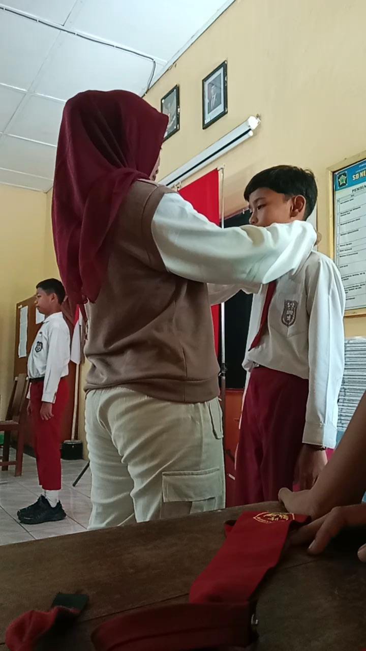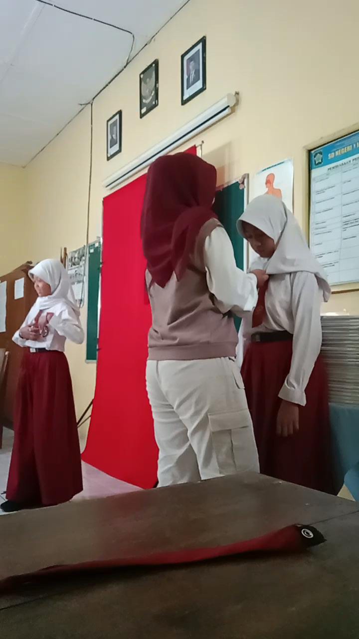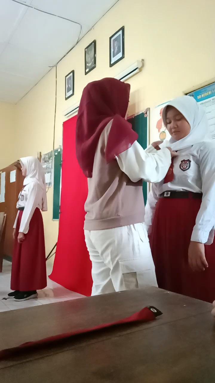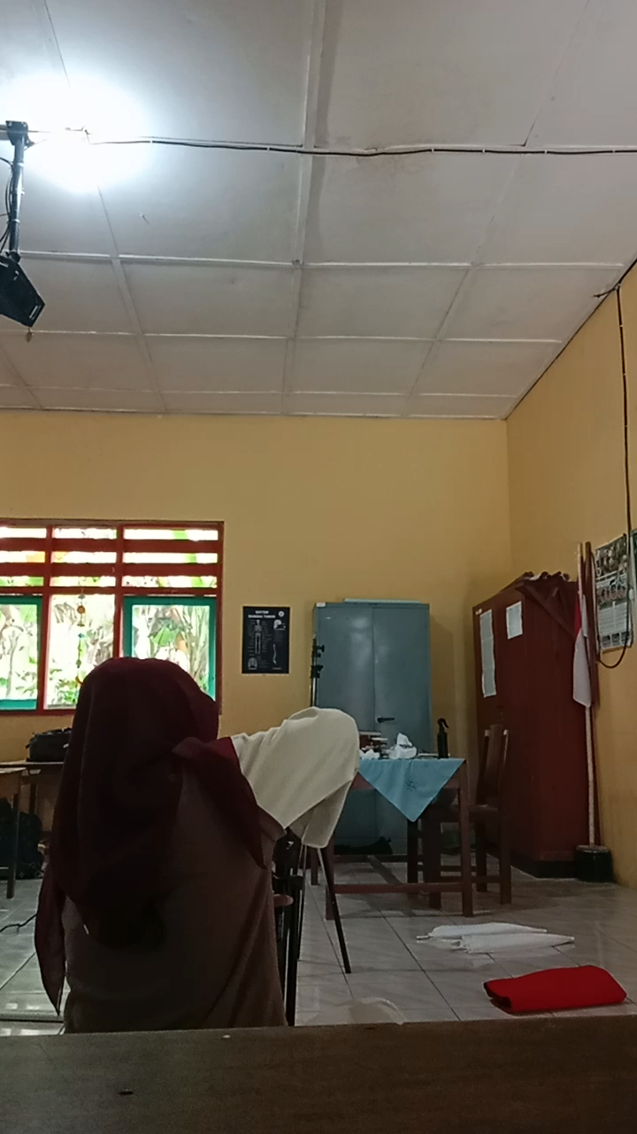 Saya membantu menyiapkan alat-alat seperti memasang tripod, memasang payung lighting, dan membantu memindahkan tas perlengkapan. Setelah semua siap, proses pemotretan dimulai. Pak Agus sebagai fotografer utama mengambil gambar, sementara Saya bertugas memanggil nama siswa satu per satu, merapikan tampilan mereka seperti kerah baju, saku, dasi, dan menempelkan badge sekolah. Selain itu, saya juga mengisi lembar DSC sebagai data pendukung.