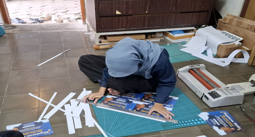 Kamis, 12 Februari 2026 Hari ini dimulai dengan sedikit menunggu, lalu lanjut potong dan gulung banner sampai selesai. Setelah itu masuk ke finishing buku Yasin, mulai dari potong cov