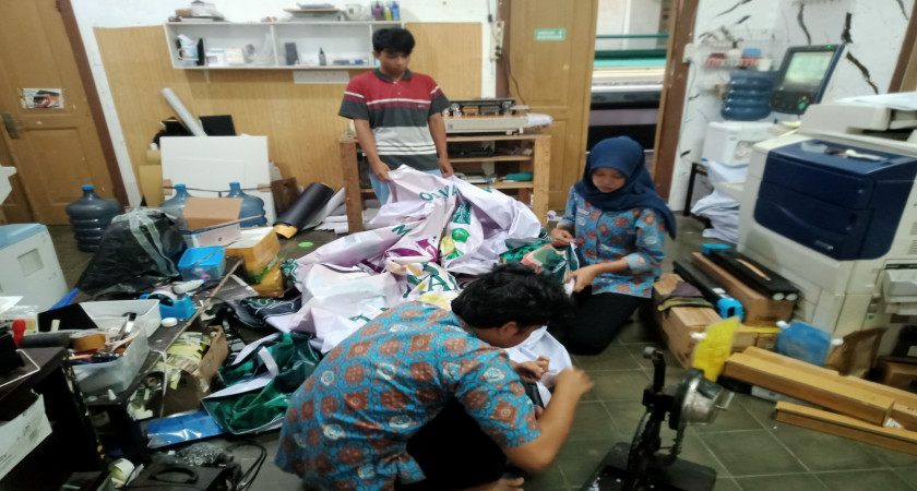 Kamis, 12 Februari 2026 Hari ini dimulai dengan sedikit menunggu, lalu lanjut potong dan gulung banner sampai selesai. Setelah itu masuk ke finishing buku Yasin, mulai dari potong cov