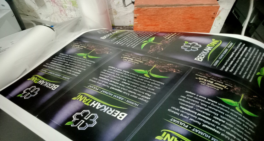 Dimulai dengan potong flyer, lalu lanjut potong stiker. Kemudian aku beli plastik laminating, lalu lanjut laminating sambil tetap potong flyer.