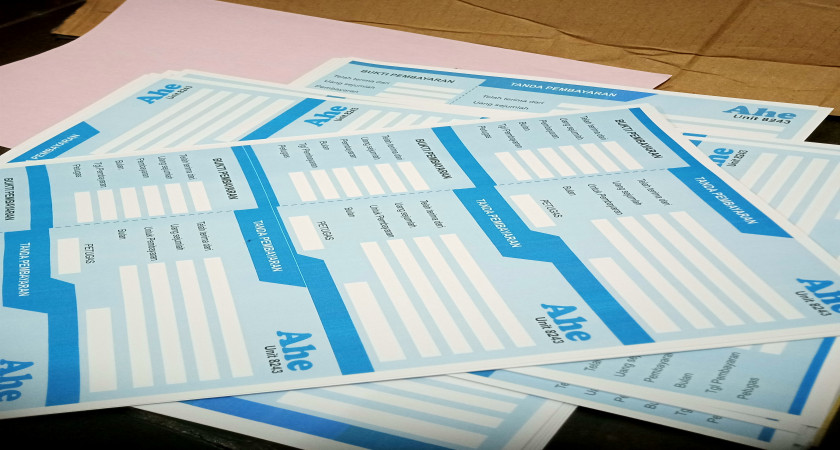 Setelah proses cetak nota selesai, lanjut ke laminating. Bantu ngerapihin hasil cetak dan memastikan semuanya kelihatan lebih rapi dan siap dipakai.